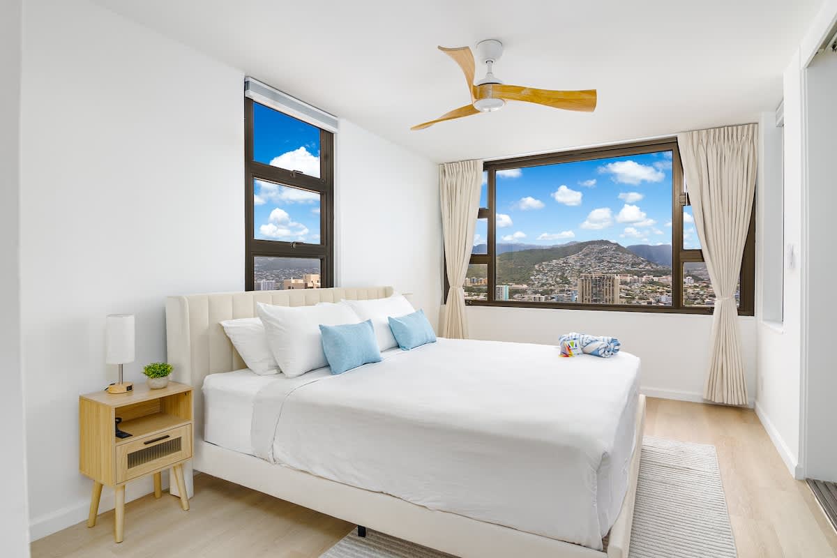 Escape to this 26th-floor Waikiki Banyan condo with stunning mountain views, a king bed, FREE parking, and high-speed WiFi!