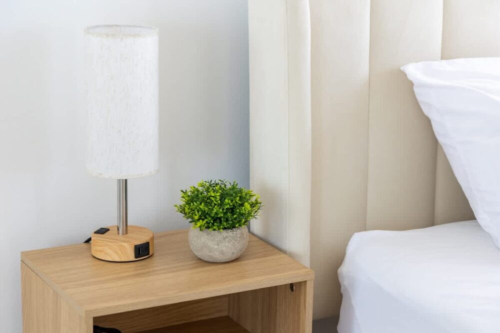 – Two nightstands with reading lamps for convenience