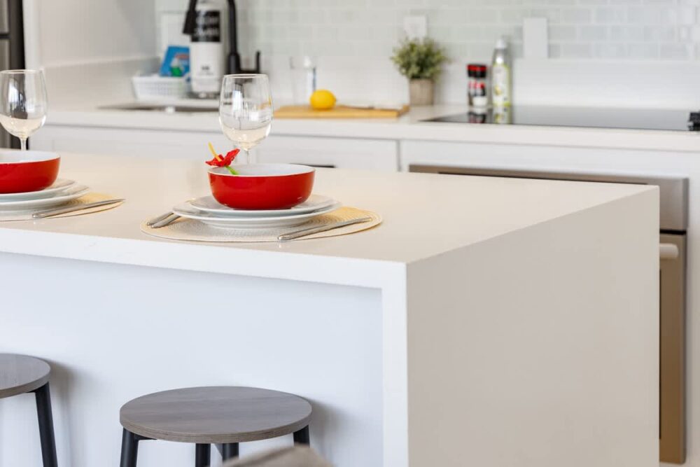 – Countertop dining area with 4 bar stools
