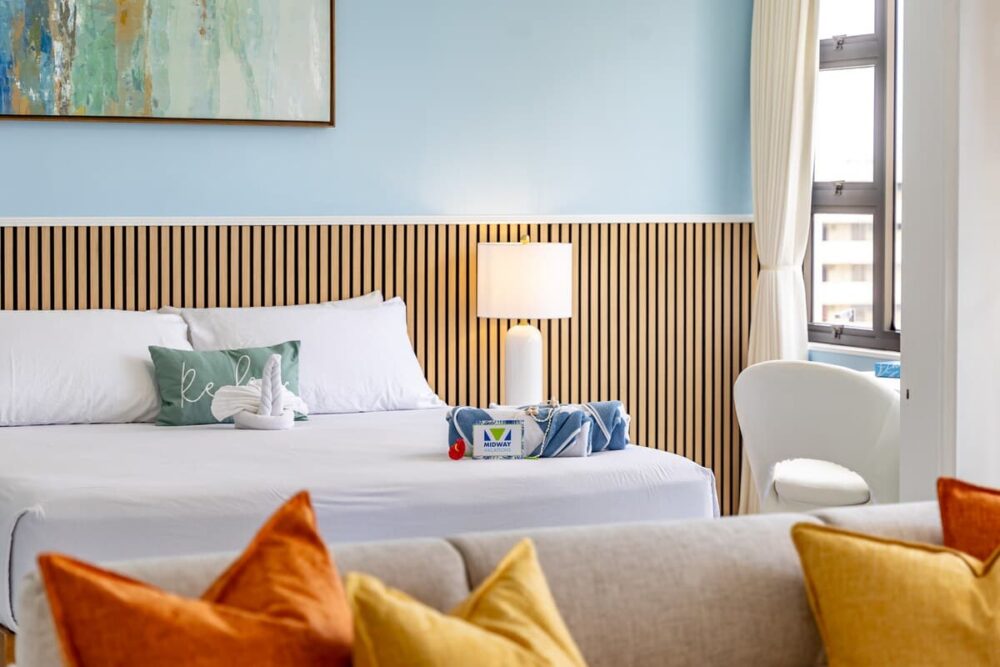 Step into this beautifully renovated chic 1BR condo on the 26th floor of Waikiki Banyan, brought to you by Midway Vacations! This spacious condo comfortably accommodates up to 4 guests, making it perfect for families. You’ll be treated to breathtaking ocean views leaving you in awe. Just a short walk from the world-famous Waikiki Beach, surrounded by fantastic shopping and dining options, ensuring the moment of your stay is packed with excitement and adventure. Enjoy the complimentary parking!