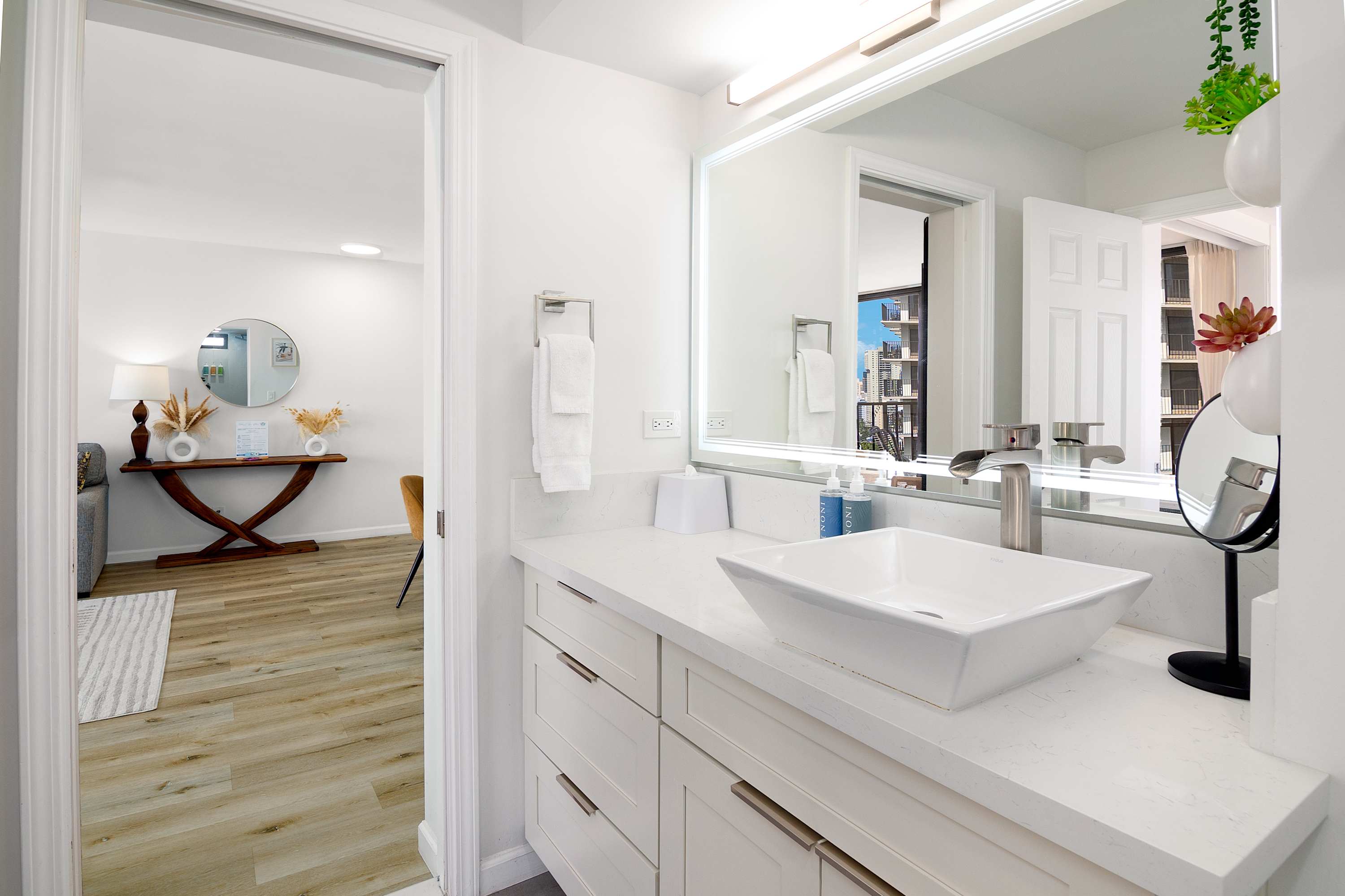 The apartment is in a great location in Waikiki, 5-7 minute walk to the beach, beautiful view from the balcony, look left and it’s an ocean view. Apartment was very clean, we had no issues, would seek again when in Oahu.