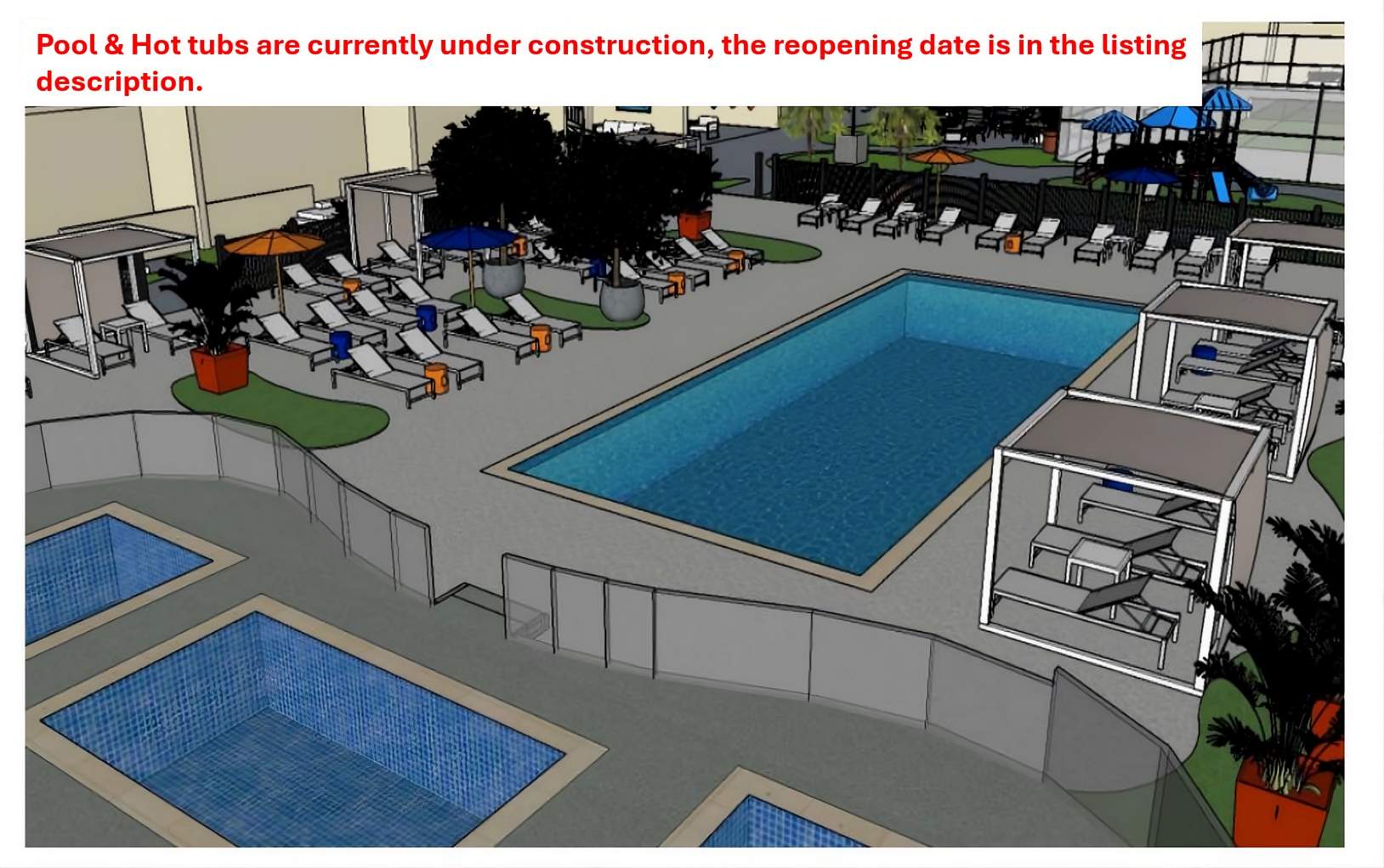 The recreation deck and its amenities are not accessible prior to May 18, 2026. Some daytime construction activity may be present. Rates have already been adjusted accordingly.