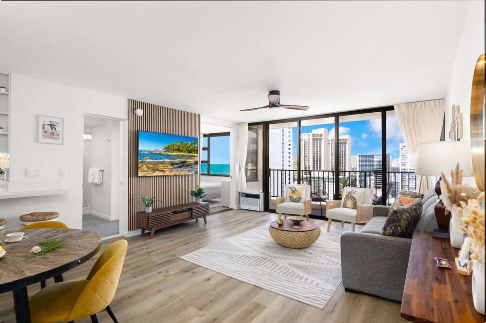 Experience the charm of Waikiki in our beautifully renovated 1-bedroom unit at the Waikiki Banyan, proudly managed by Midway Vacations. Accommodating up to four guests, this stylish retreat is just moments from Waikiki Beach, world-class shopping, and dining. Enjoy modern decor, breathtaking ocean views, and thoughtful amenities, including free parking and high-speed WiFi, for an unforgettable island getaway.