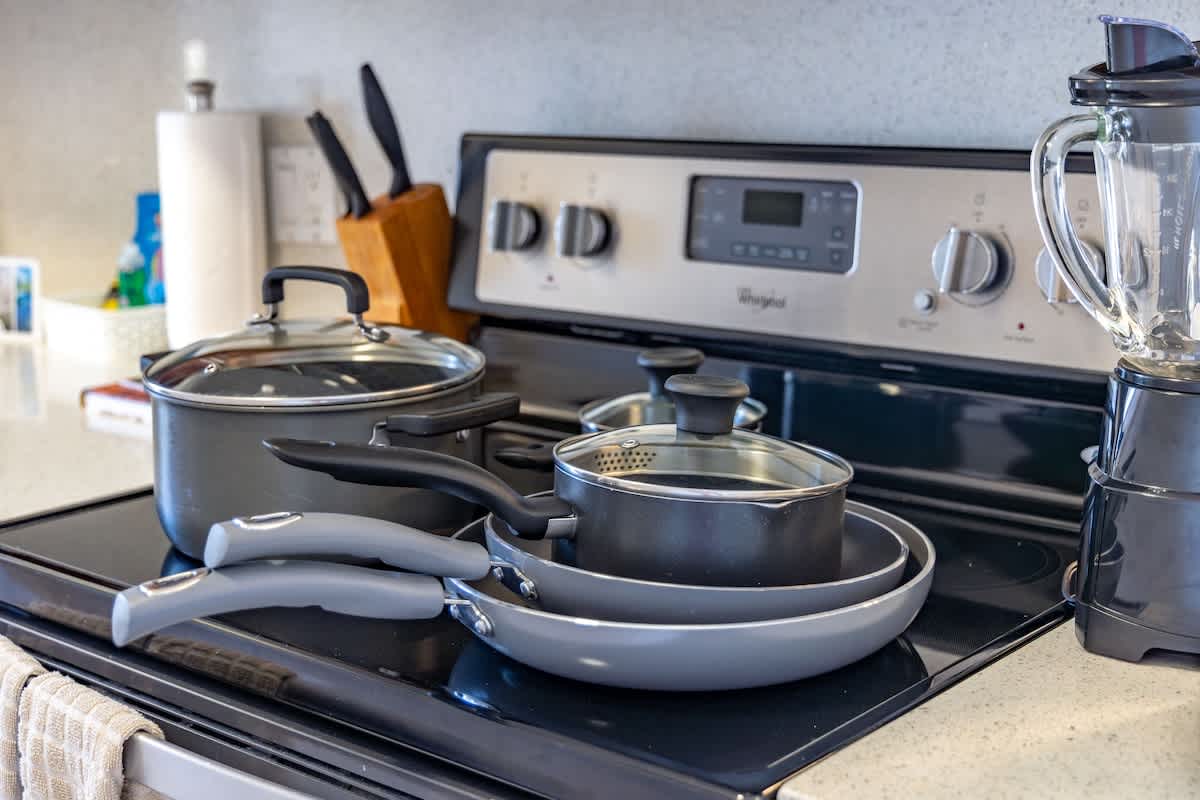 No dish washer. You have to wash dishes & cutlery by hands after cooking.