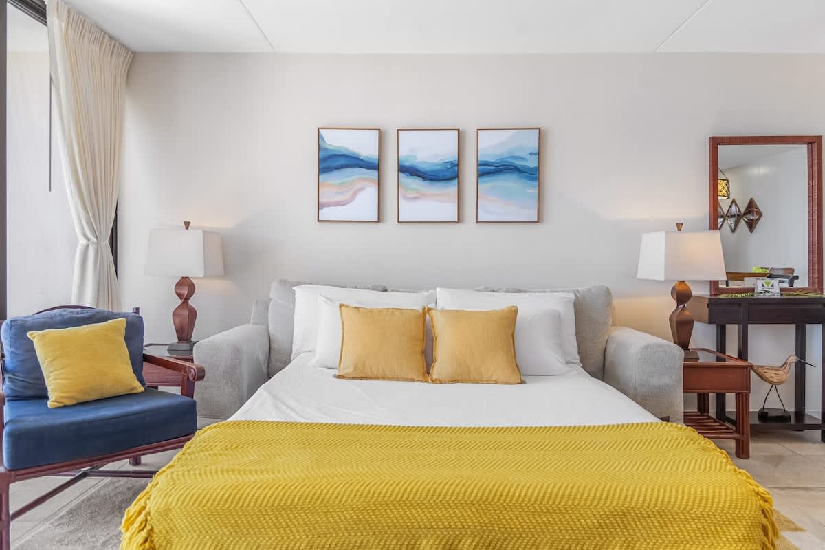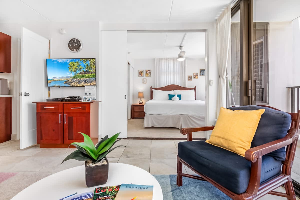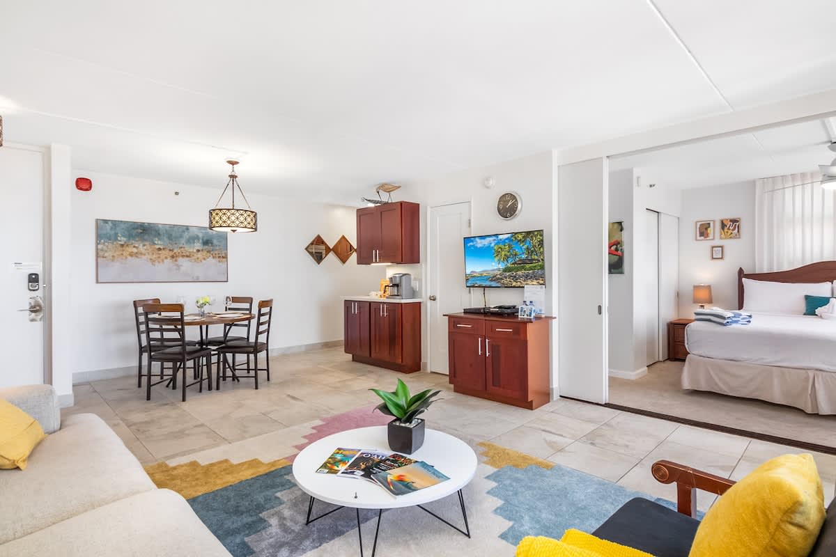We loved our stay at the Waikiki Banyan. The bed was comfortable, parking was easy, the space was great for us as a couple and the view is amazing (both the ocean out from the lanai and the sunrise and views of Diamond Head from the kitchen. The location was convenient for us as a home base each day to go out and explore different parts of the island. There are great places to eat and also a Safeway and Leonard’s malasadas just a mile up the street. We would stay here again!