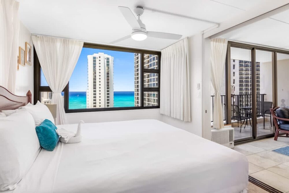 Are you ready to experience paradise? Then check out this spacious suite in the family-friendly Waikiki Banyan, located only one block away from some of the most famous waves in the entire world! This condo is a corner unit! — on the 26th floor and gives you an awe-inspiring view of the Pacific… and it’s a view that looks even better from your private lanai!