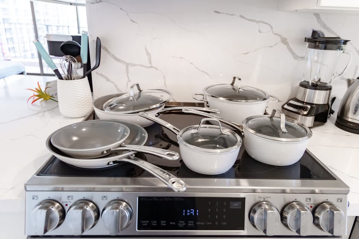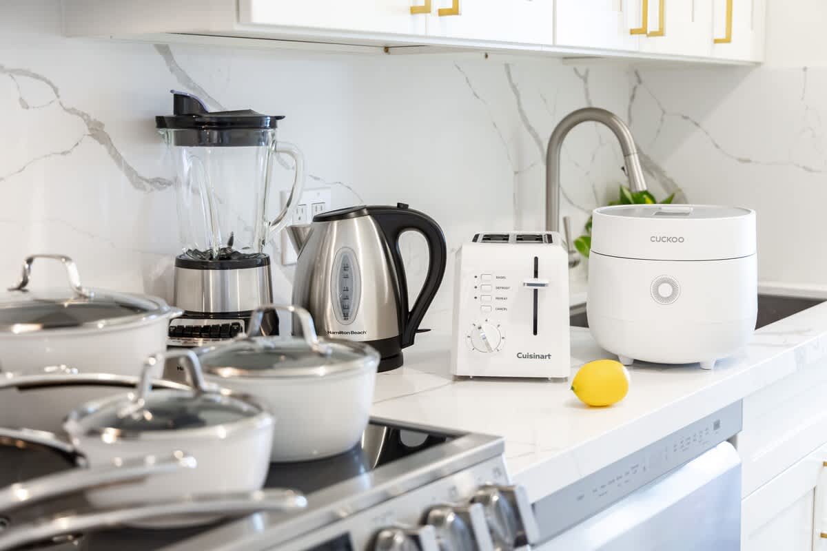 – Fully equipped with a toaster, coffee maker, rice cooker, blender, kettle, pots, pans, silverware, cookware, and dishes.