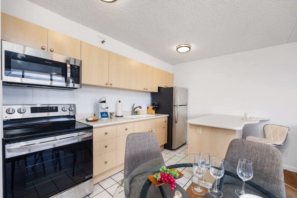 Best of all, our listing comes with dedicated parking—an invaluable perk in this area—so if you’re planning to rent a car or bring your own, you’ll have a secure, convenient spot waiting for you. This means you can effortlessly explore Oahu’s stunning landscapes, from the lush North Shore to the historic sites near Pearl Harbor, and still return to your own parking space at day’s end. With so many transportation options at your fingertips, you’ll find it easy to explore all that Waikiki and the rest of the island have to offer.