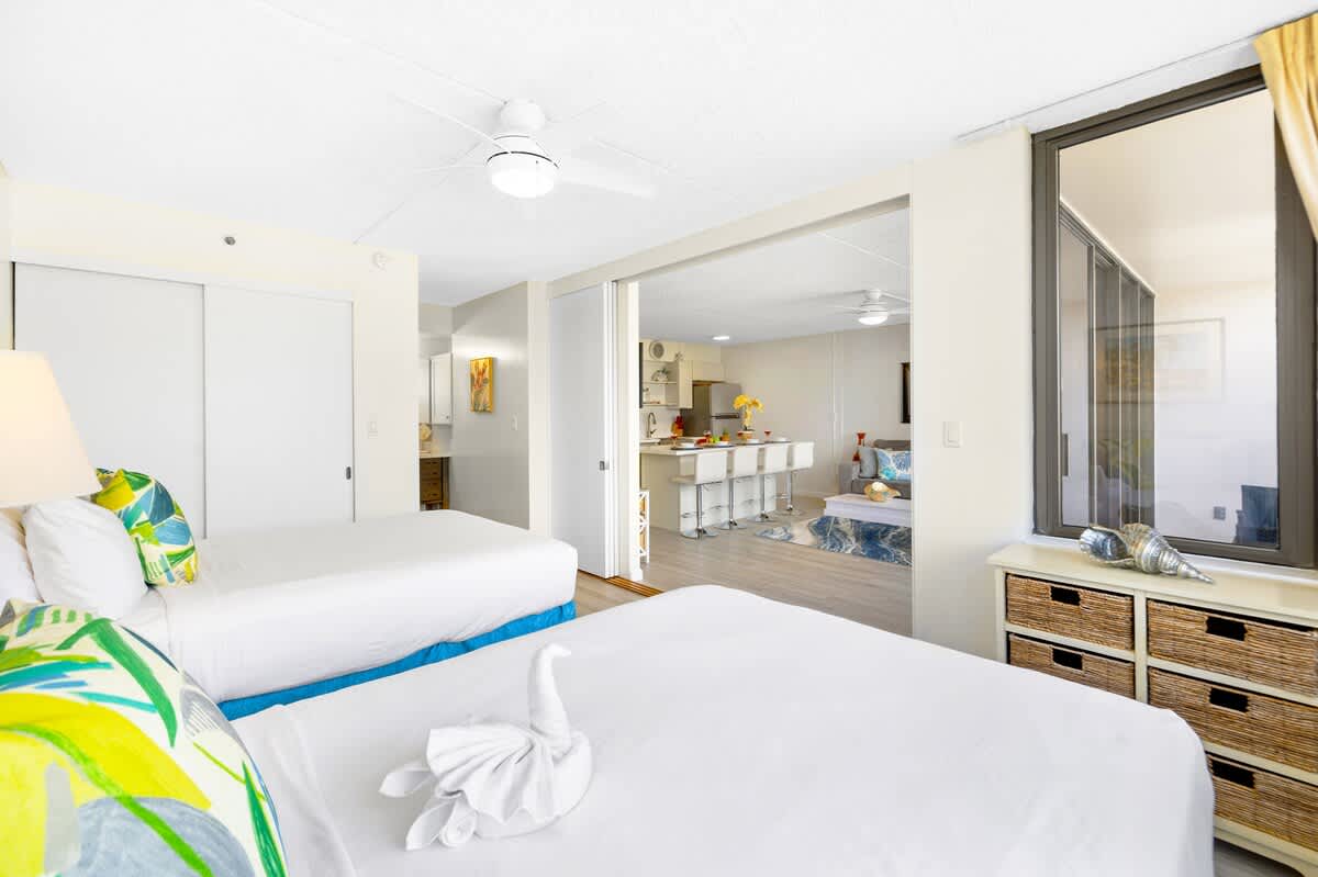 All linens and towels, including beach towels, are provided, and you’ll also have easy access to laundry facilities located on each floor. With free high-speed internet and free parking, you just can’t go wrong with Waikiki Banyan!