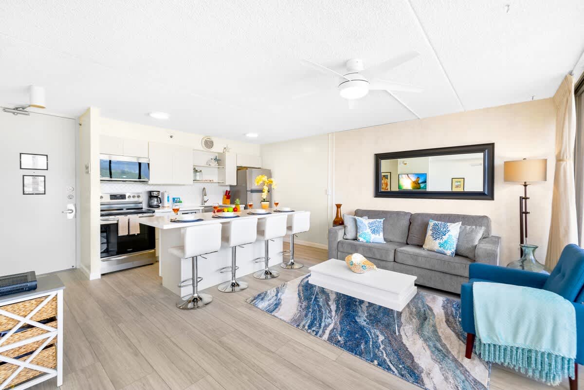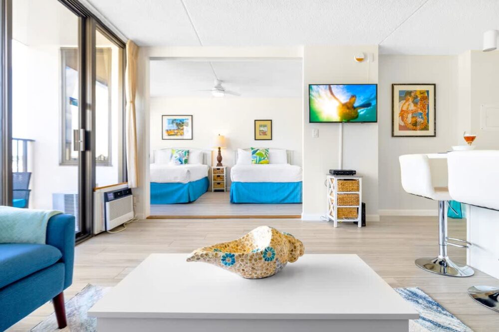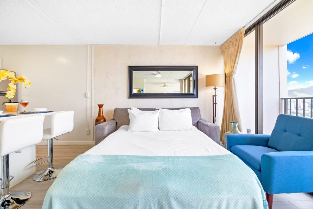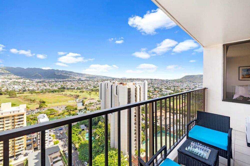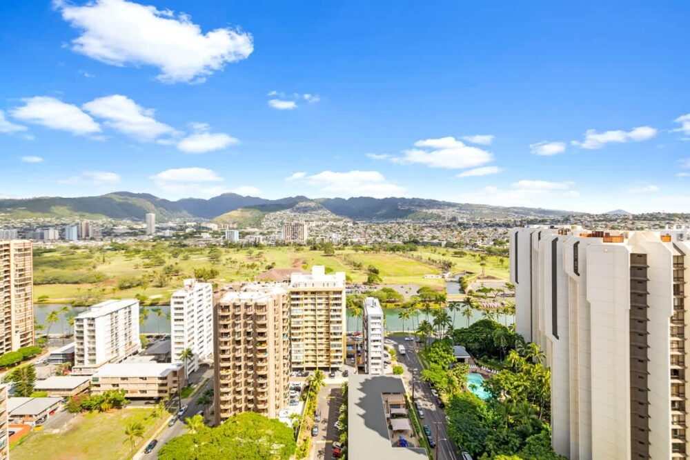 This fantastic condo is the ideal starting point for your next Hawaiian adventure. Perched on the 28th floor, it treats you to breathtaking mountain and city views from the living room, bedroom, and balcony. And did we mention that the beach is just a leisurely stroll away? You’ll truly have it all!