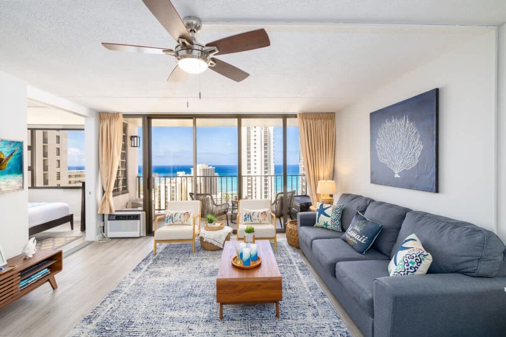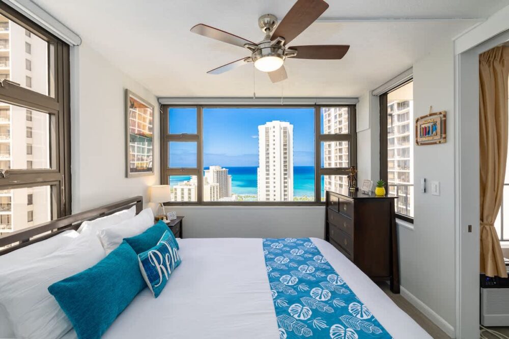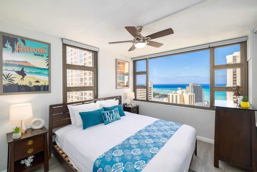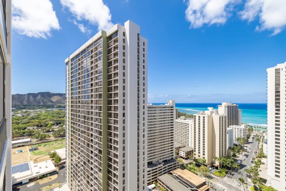 Ready to embark on your tropical paradise adventure? Get ready to be enchanted by this recently renovated, vibrant suite nestled in the family-friendly Waikiki Banyan, just a stone’s throw away from some of the world’s most iconic waves! This condo is a true gem—a corner unit, perched on the 28th floor, offering you a breathtaking vista of the Pacific Ocean. And trust us, the view is even more jaw-dropping from your very own private lanai!