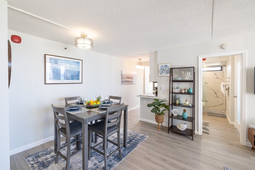 Cozy and recently renovated 1-bedroom condo on the 28th floor of the Condominium Hotel Waikiki Banyan that offers breathtaking ocean and Diamond Head views! It’s perfect for up to four guests. Just a short stroll away from Waikiki Beach, fantastic shopping spots, and a variety of restaurants. Plus, we offer complimentary parking and high-speed wireless internet to make your stay even more enjoyable!