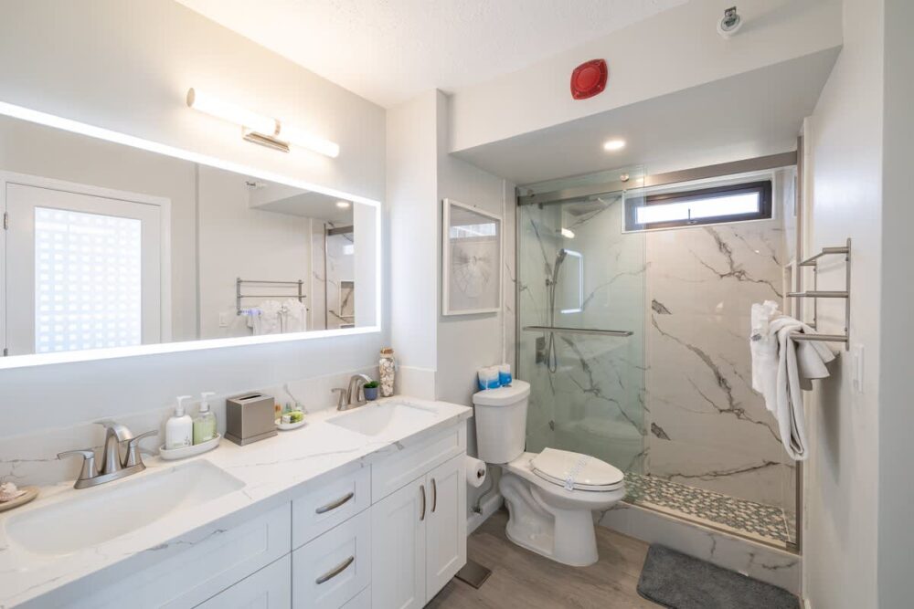 – Vanity with 2 sinks and granite countertop