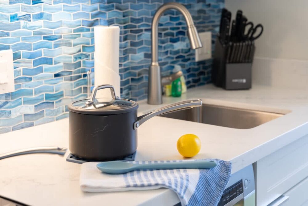 – Fully equipped with a toaster, coffee maker, rice cooker, blender, kettle, pots, pans, silverware, cookware, and dishes.
