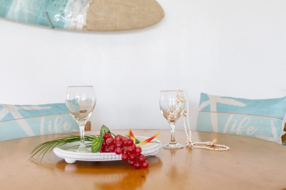 – Your very own Aloha Pack: coffee filters, salt and pepper, laundry detergent, dish soap and sponge, hand soap, shampoo/body wash/lotion set, toilet paper, paper towels, tissues, and cleaning supplies.