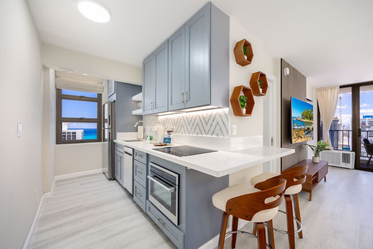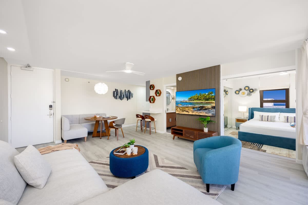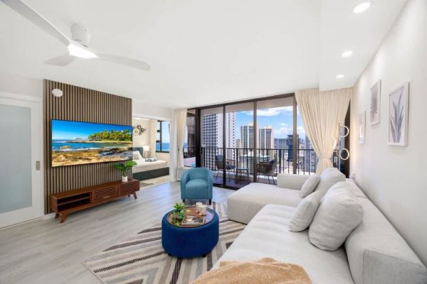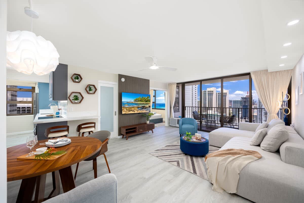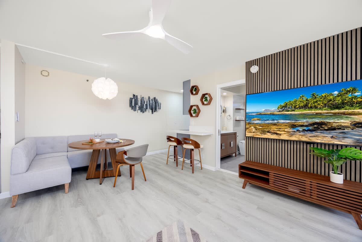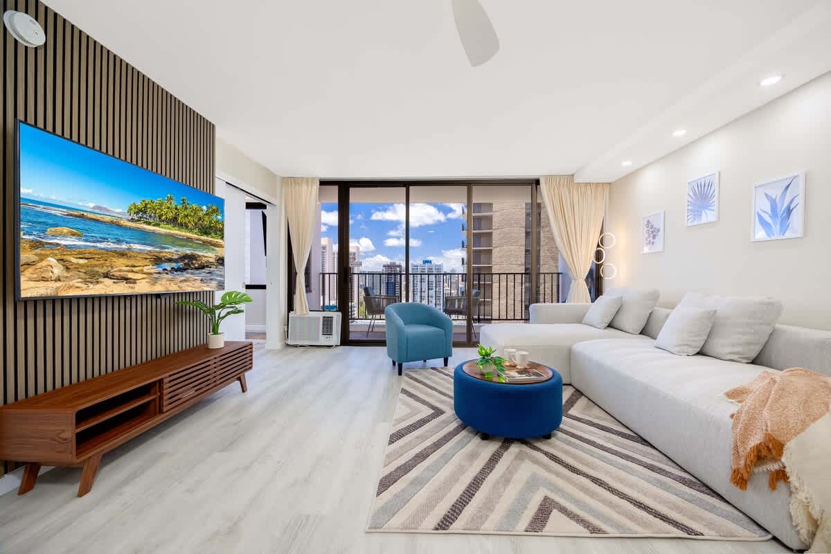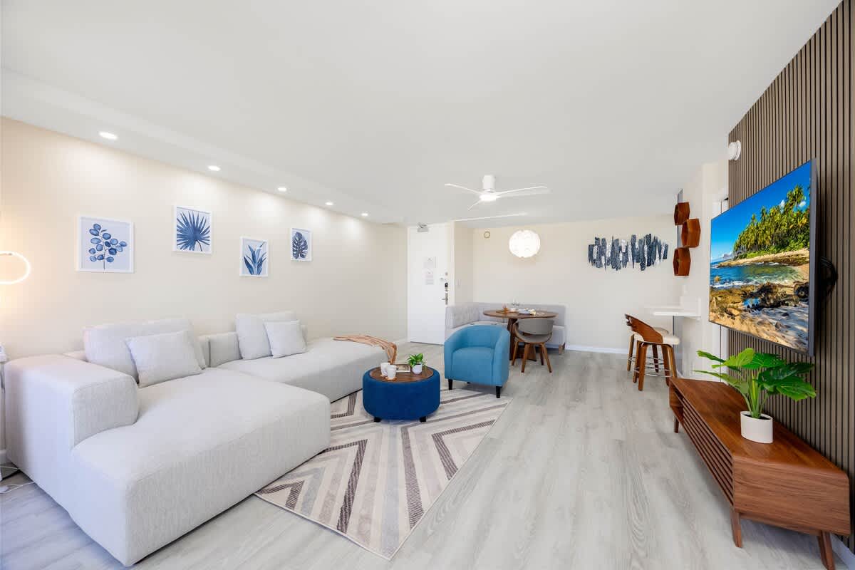 Experience a relaxing stay in our beautifully remodeled condo on the 29th floor of the Condominium Hotel Waikiki Banyan, proudly managed by Midway Vacations. Enjoy stunning ocean views, comfortable accommodation for 2 guests, and a prime location just a short walk from Waikiki Beach, world-class shopping, and a variety of dining options. Plus, complimentary parking and high-speed Wi-Fi are included for your convenience!