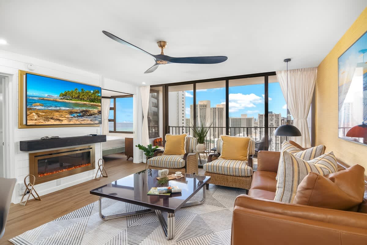 Indulge in the lap of luxury in this newly renovated premium 1BR condo, on the 30th floor of Waikiki Banyan, brought to you by Midway Vacations! Accommodates up to 2 guests, perfect for couples. It treats you to breathtaking ocean views that will leave you speechless. Just a stroll from the world-famous Waikiki Beach, surrounded by fantastic shopping and dining spots, every moment here is filled with excitement. Plus, a complimentary parking for an added convenience.