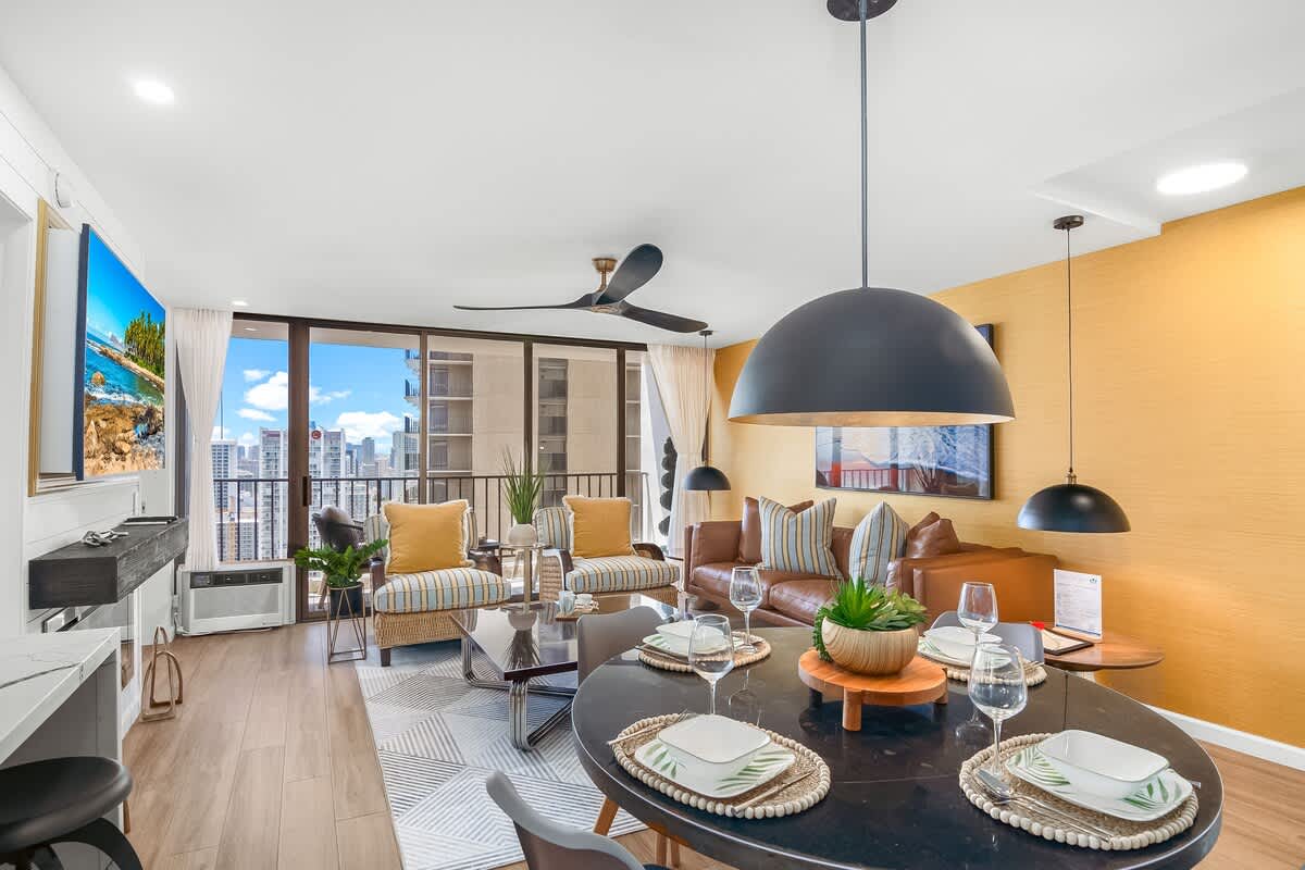 A very beautiful apartment just one block away from the beach strip in Waikiki. Plenty of restaurants in walking distance, ranging from high end to food truck and hole-in-the-wall type of places. If you have no need for a car otherwise, the bus line from the airport stops right at the building.