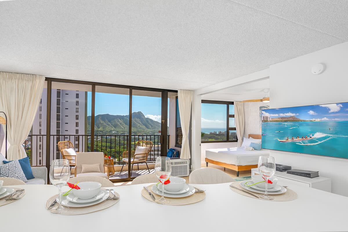 Located at the heart of Waikiki beach and very close to everything. Nice view of Diamond head right from the living room & bedroom (exactly as advertised in the picture)! Midway vacation is also super reponsive on all the questions we have during our stay!