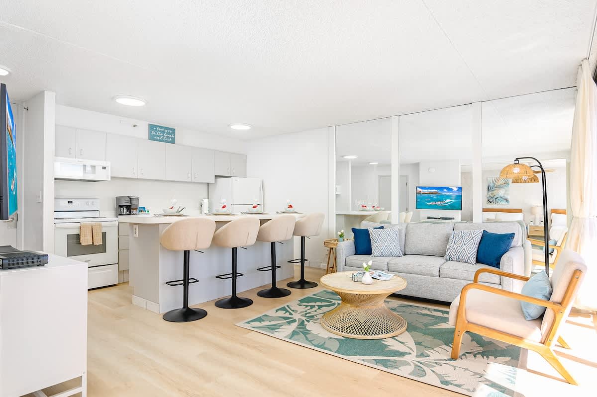 Stunning 1-bedroom condo located on the 32nd floor of Waikiki Banyan brought to you by Midway Vacations! It accommodates up to 4 guests and treats you to mesmerizing ocean views and Diamond Head. Just a block away from the famous Waikiki Beach, shopping centers, and delectable dining options at your fingertips. As if that wasn’t enough, we’ve got a little extra treat for you – enjoy the perks of free parking, adding an extra layer of convenience to make your stay even more delightful!