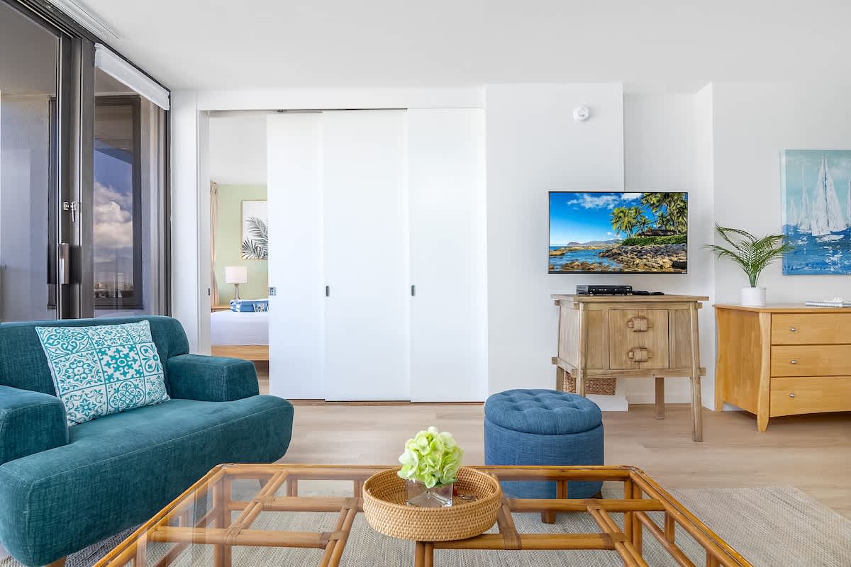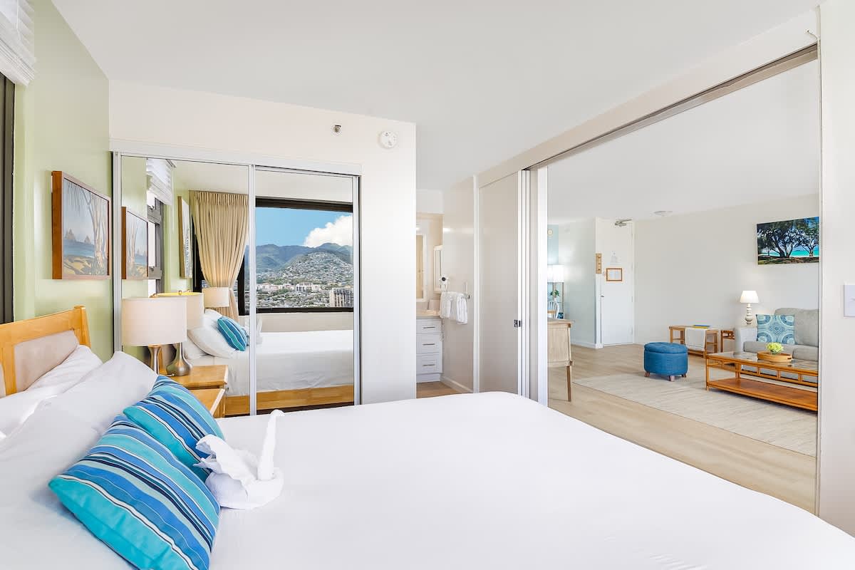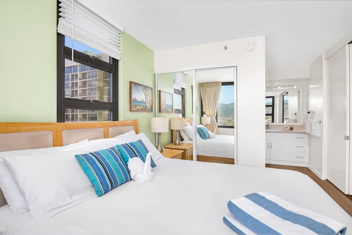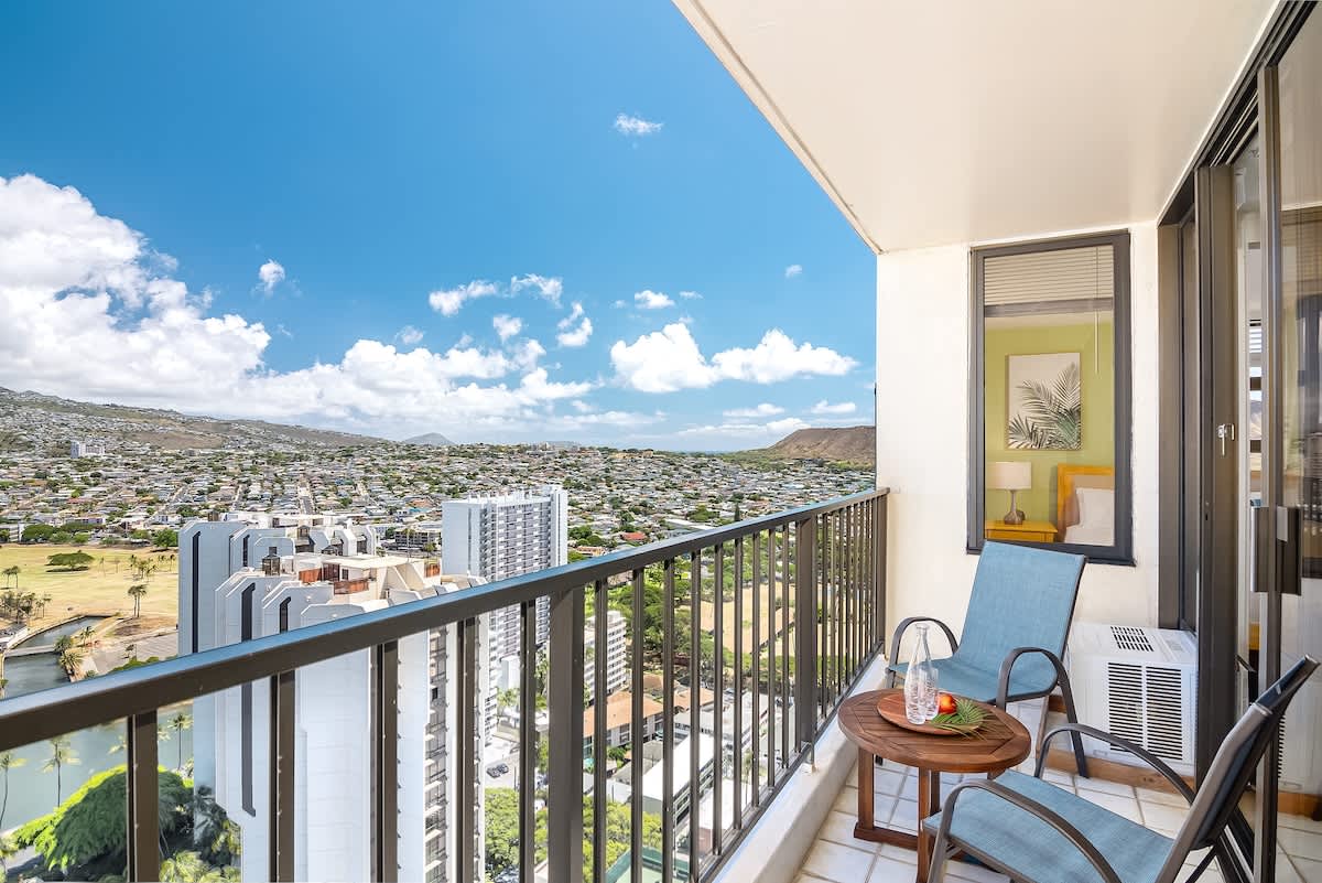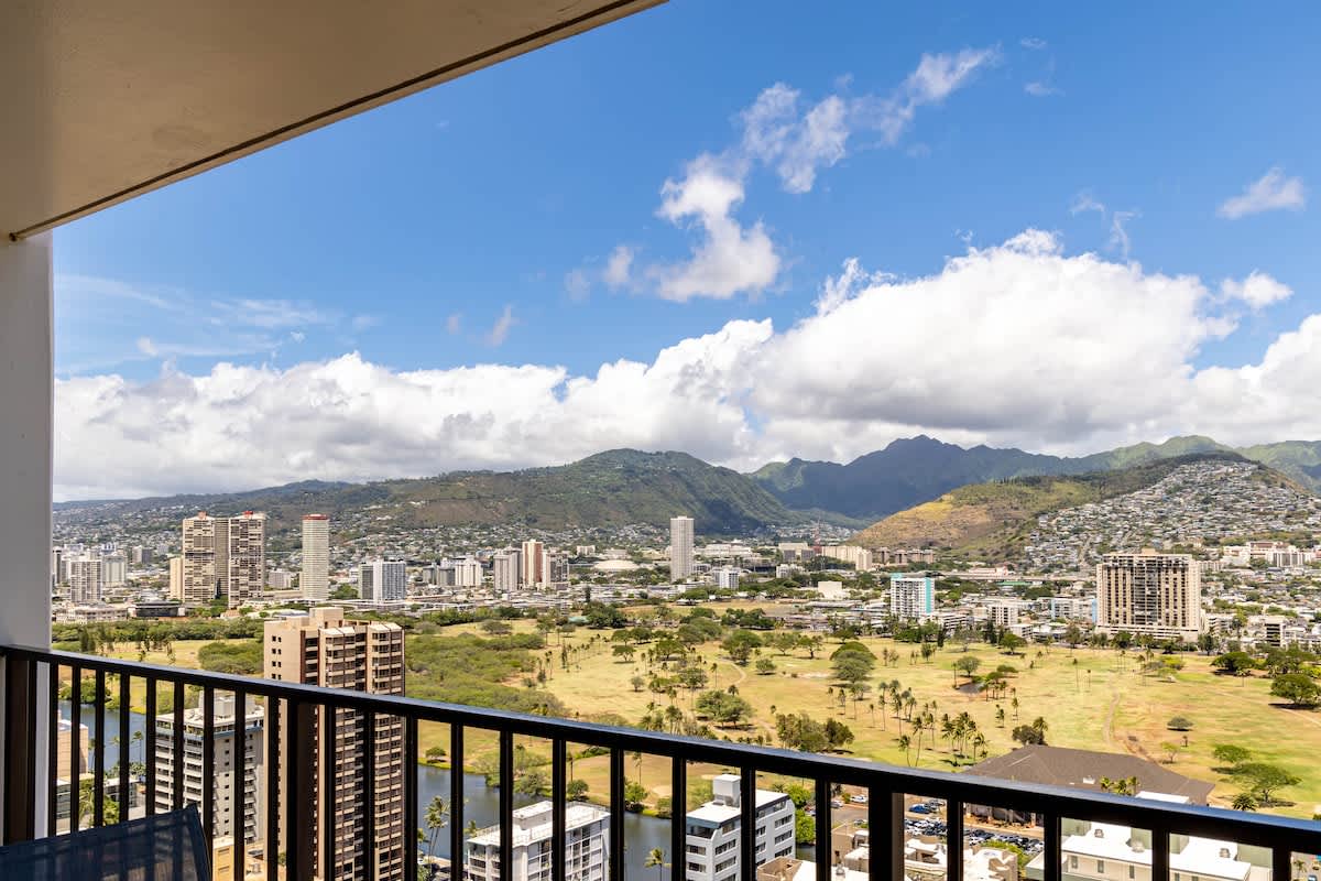 Experience the perfect blend of city lights, mountain breezes, and ocean charm in this 32nd-floor corner unit in Waikiki.