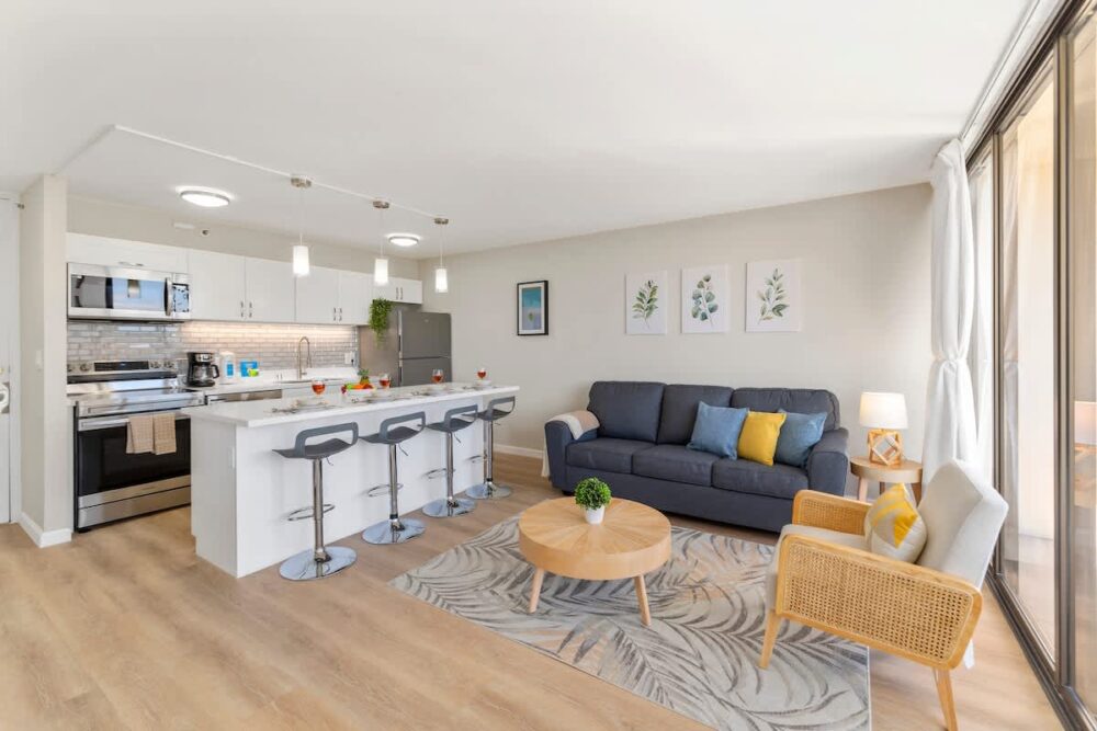 Experience the ultimate in comfort with this newly renovated apartment brought to you by Midway Vacations! Nestled in the heart of it all, you’ll adore the breathtaking Ocean and Diamond Head Views from this centrally located gem. Perfect for a family of 4, enjoy your stay at the Condominium Hotel Waikiki Banyan, just a stroll away from Waikiki Beach, fantastic shopping spots, and delightful restaurants. Plus, revel in the convenience of free parking and high-speed wireless internet!