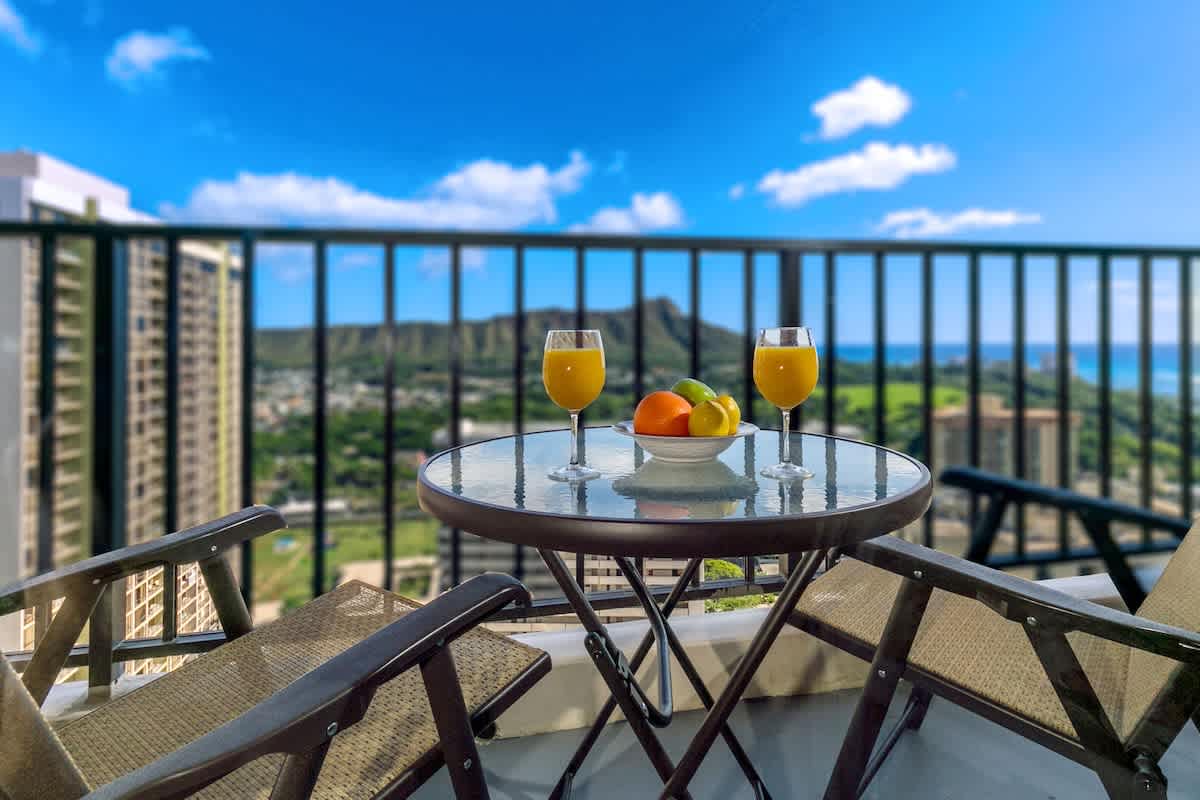 This condo managed by Midway Vacations was the perfect place for us to stay for a week on Oahu. Checkin was very east. The building is one block from the ocean, and a short walk to tons of shops and restaurants. It was an end unit on the 33rd floor, so we had great ocean views through the kitchen window and the bedroom window, as well as a view of Diamond Head and partial ocean from the living room window/lanai. The free parking was a huge plus since we also did many day trips around the island. The unit itself was a good size for two of us. The king bed was comfy. The unit came with two beach chairs, two beach towels, and an umbrella, as well as a beach mat and two sets of snorkel gear upon request. One note about the snorkel gear is that it was only a mask and snorkel, no fins. But there are plenty of rentals nearby and we went with Snorkel Bob’s. Besides that we had an amazing time here and we would definitely stay here again!