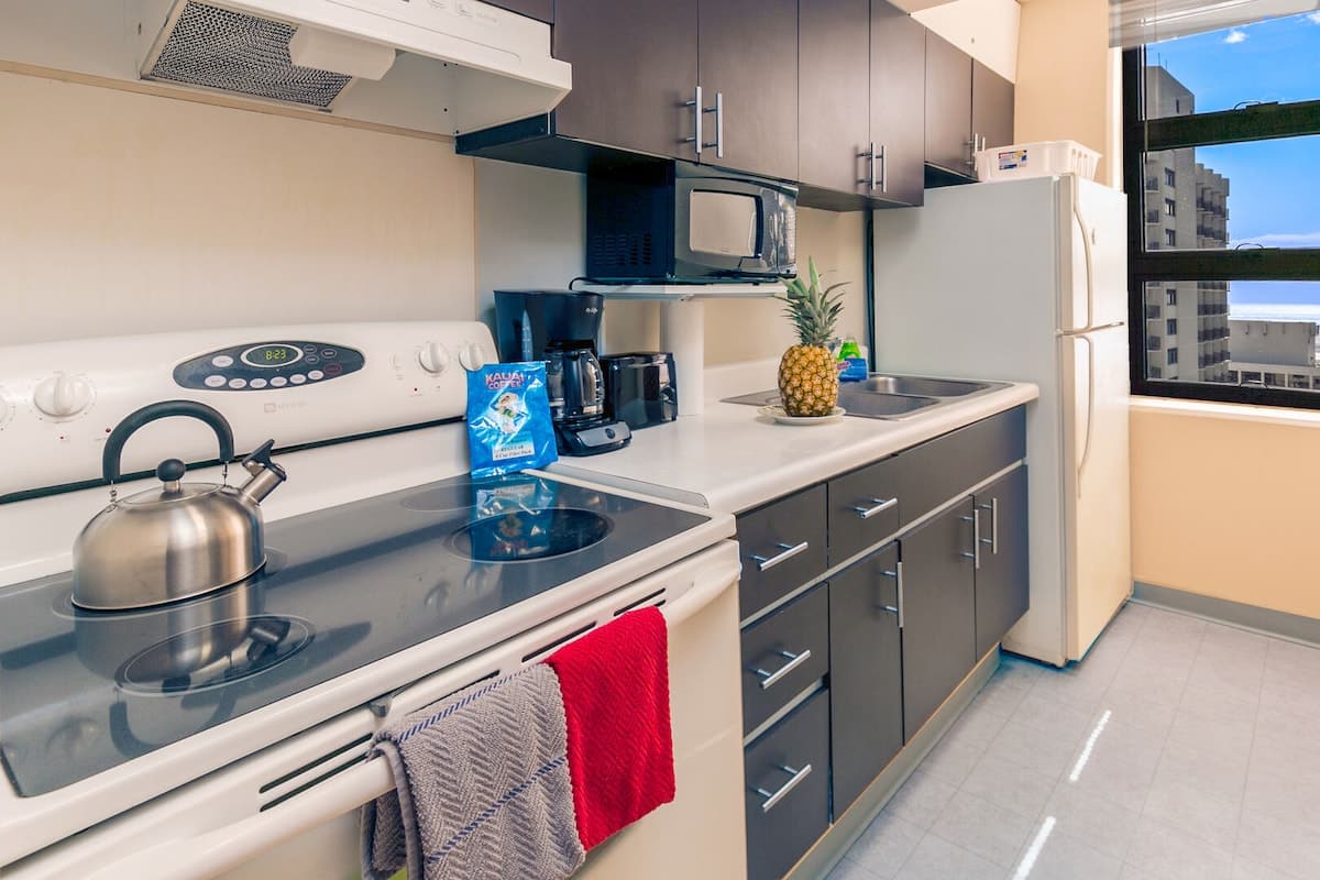 All linens and towels, including beach towels, are provided, and you’ll also have easy access to laundry facilities located on each floor. With free high-speed internet and free parking, you just can’t go wrong with Waikiki Banyan!
