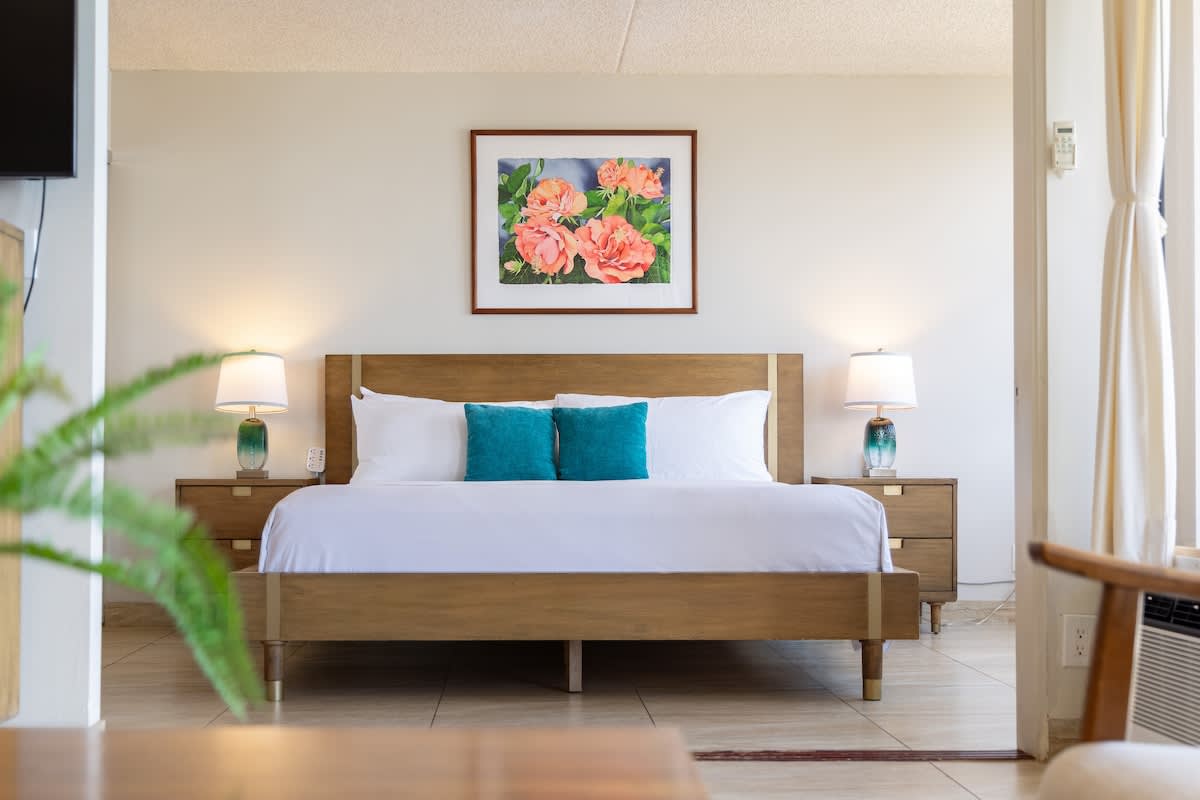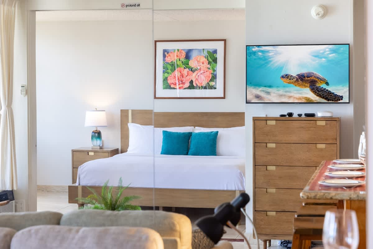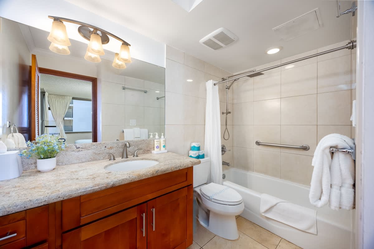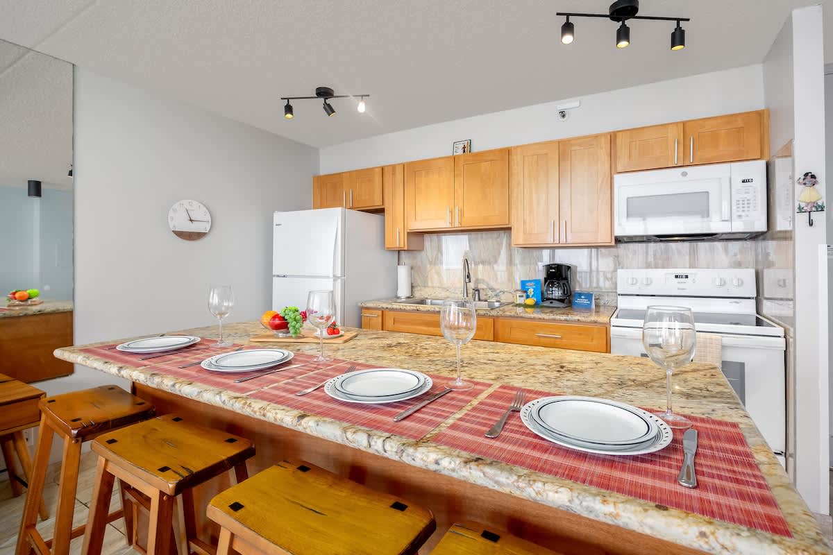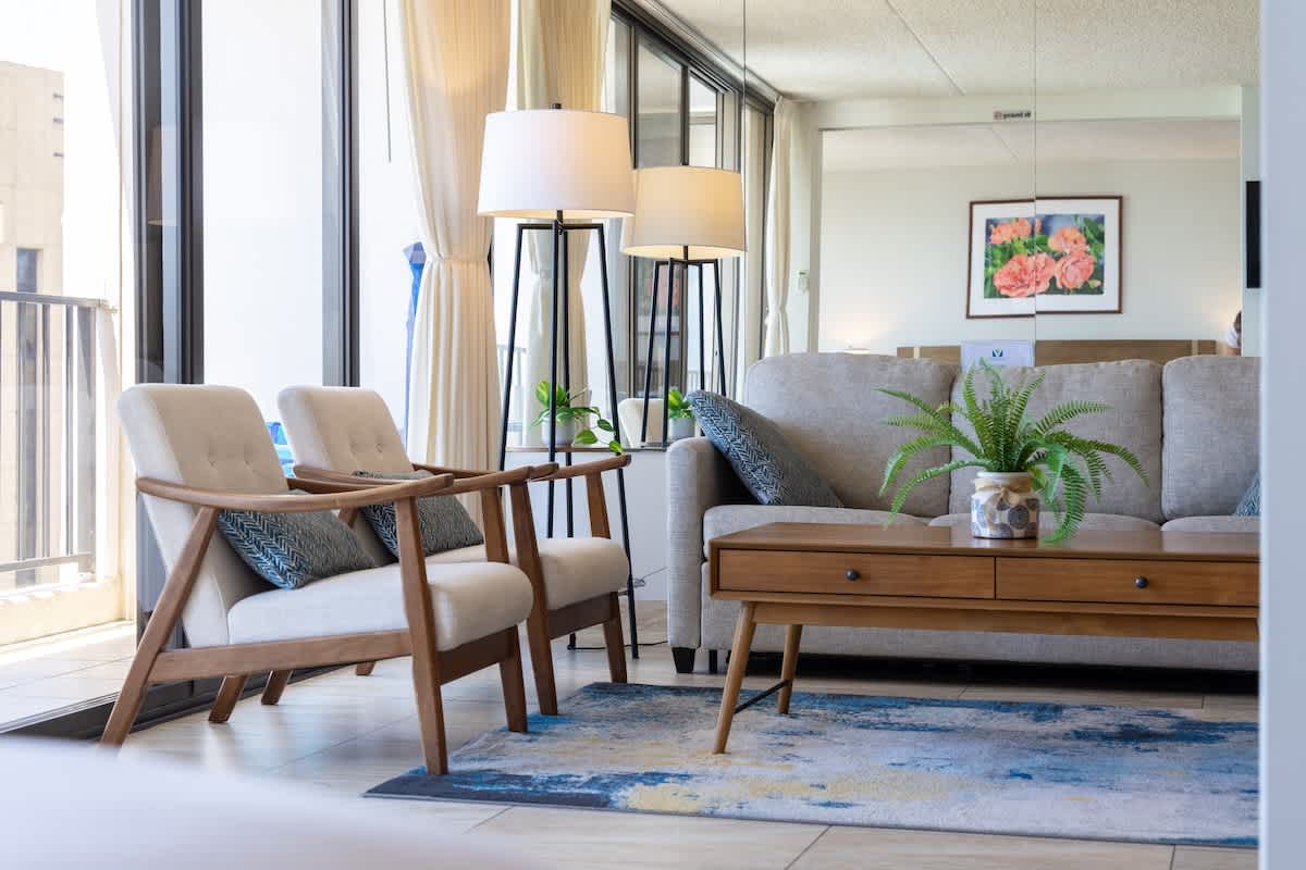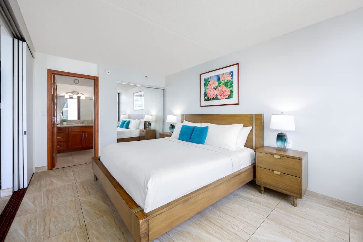 This charming, newly renovated one-bedroom suite on the 35th floor offers a comfortable stay with a king bed, a sleeper sofa, and a full kitchen. You’ll love the free WiFi, A/C, included parking, and private lanai with stunning ocean views. Just a short stroll from Waikiki Beach, this is your perfect home base for exploring all the island has to offer.