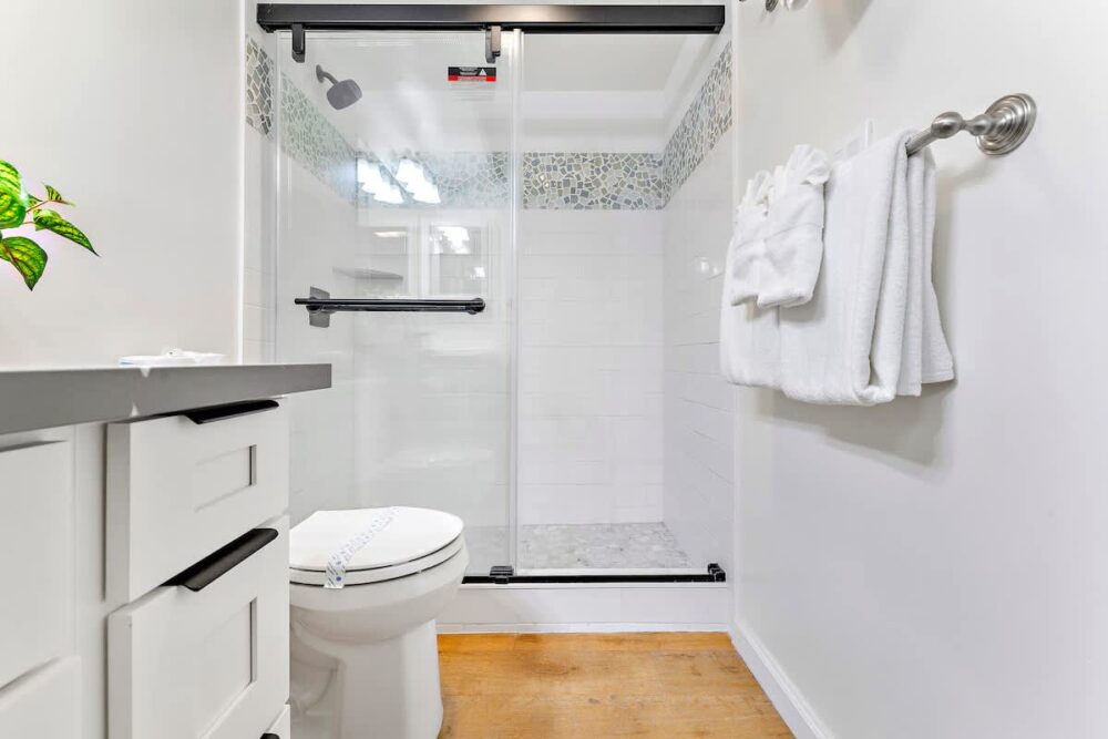 – Walk-in shower with sliding glass door