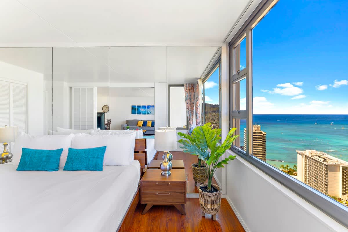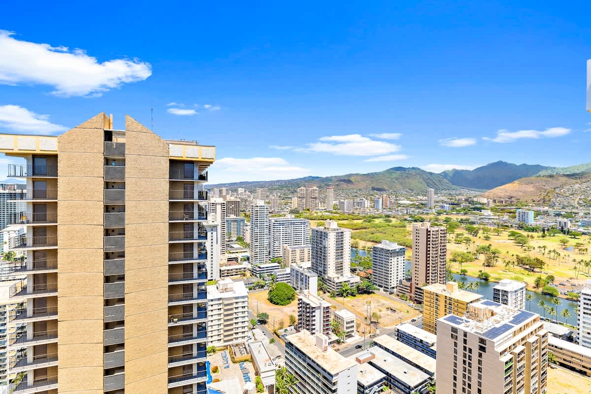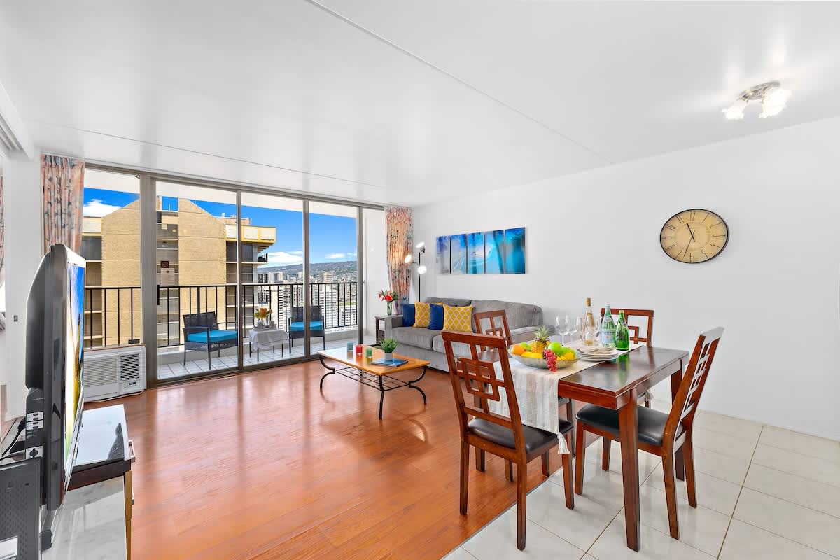 Experience a warm and inviting 1-bedroom escape on the 36th floor of the Waikiki Banyan, perfect for up to 4 guests. Enjoy an easy walk to Waikiki Beach, explore lively shops, and discover great dining just steps away. After a fun day out, relax on your private lanai with ocean and mountain views. With high-speed Wi-Fi and complimentary parking, your stay is comfortable and hassle-free.