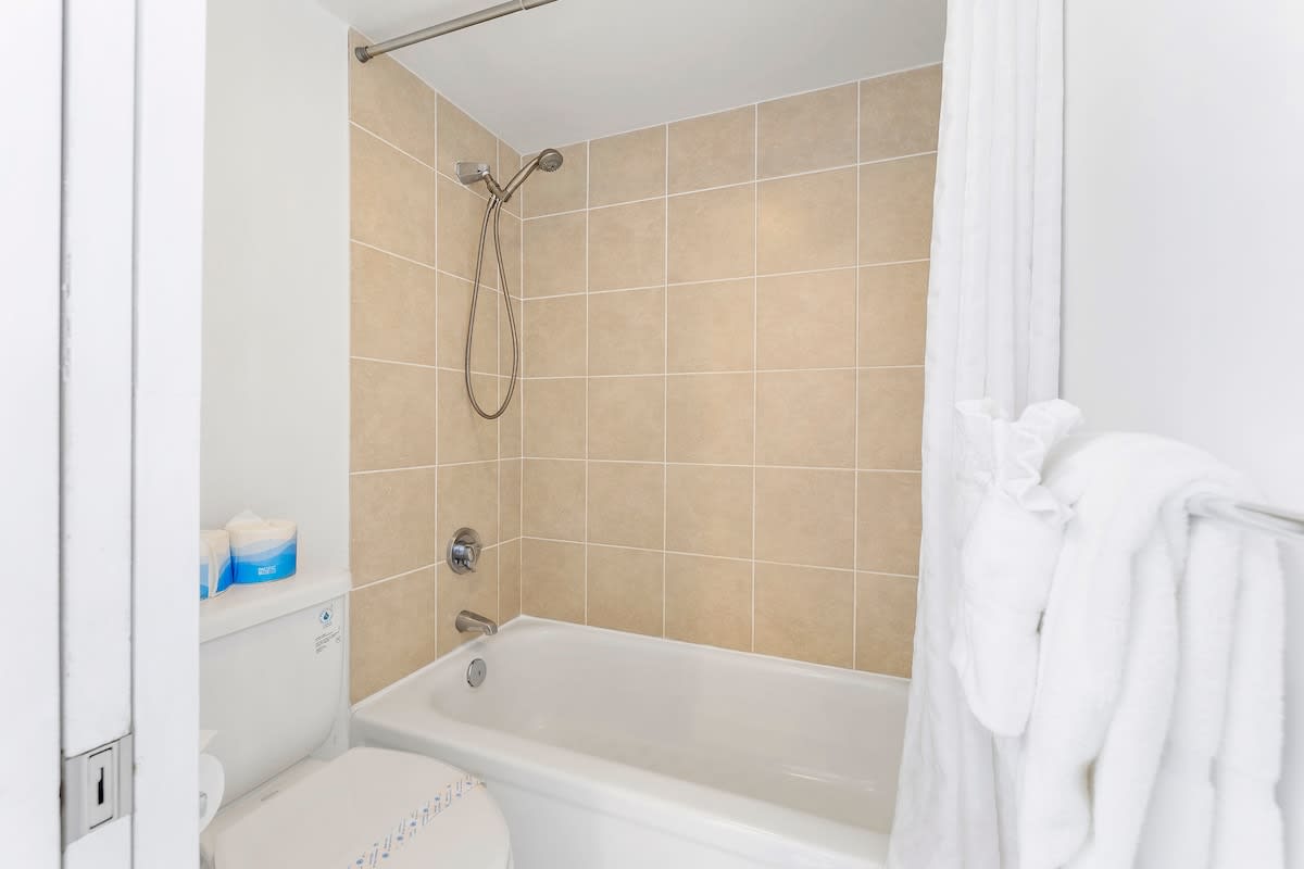 • Fresh bath towels, hand towels, and washcloths provided (one set per guest)