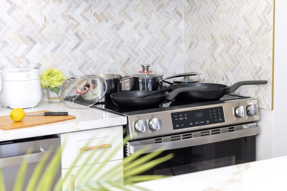 • Stocked with cookware, dishes, silverware, and utensils for home-style meals