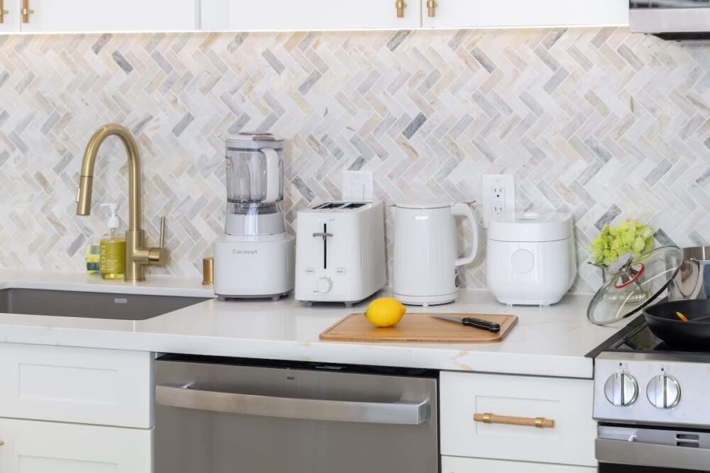 • Small appliances: toaster, Keurig coffee maker, rice cooker, blender, and kettle