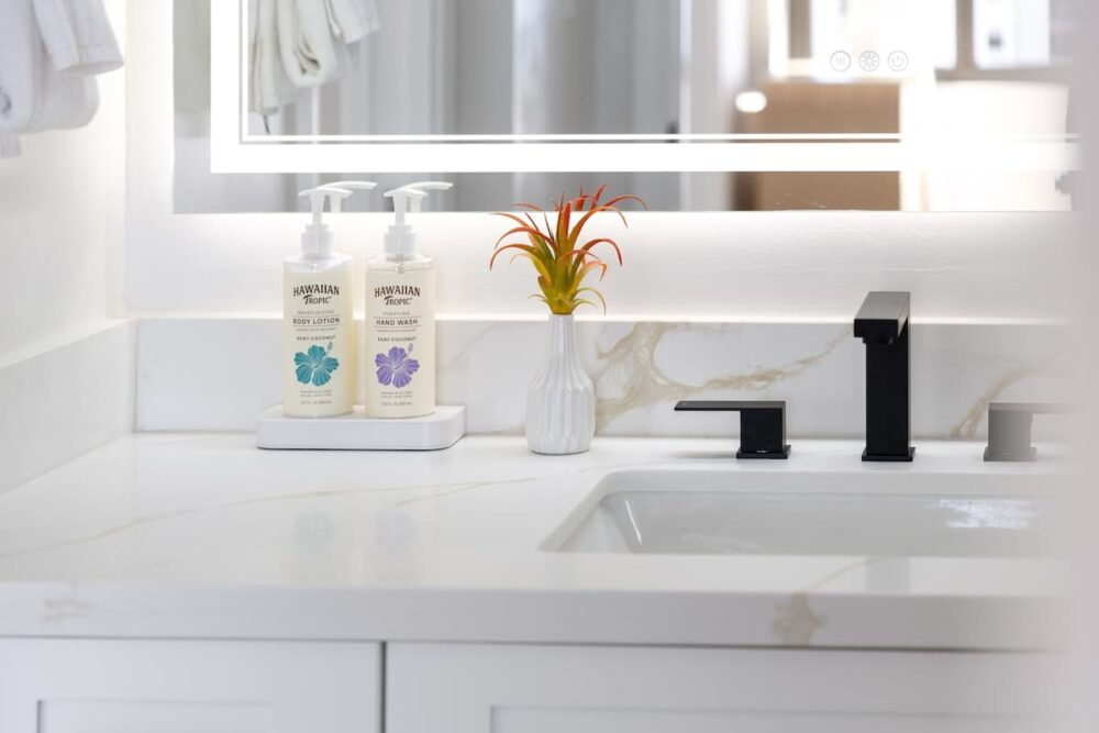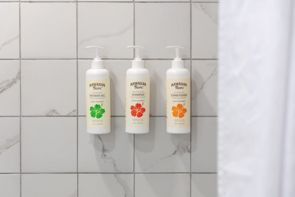 • Complimentary toiletries including shampoo, conditioner, body wash, plus a hair dryer