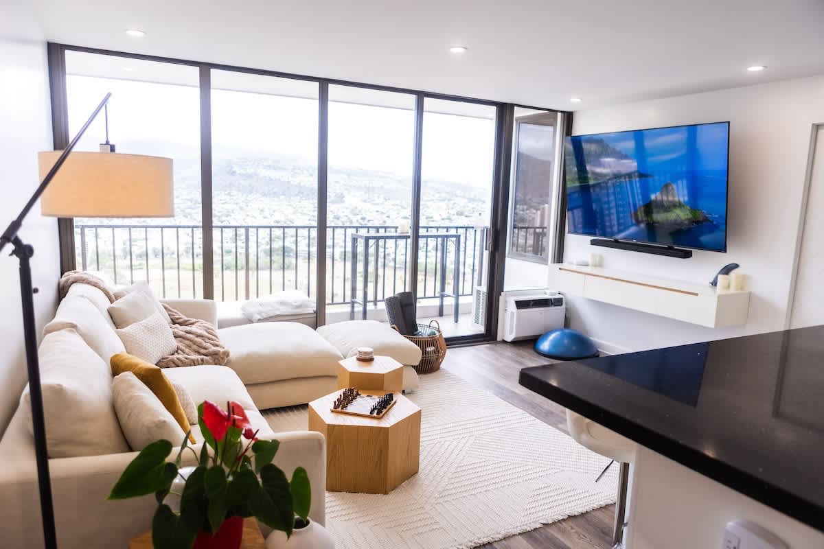 Discover your perfect Waikiki escape high above the city on the 37th floor of the Waikiki Banyan. This inviting 1-bedroom condo offers a relaxing space for 2 guests, blending comfort and modern island charm. Enjoy a restful night on the plush queen bed, cool off with air conditioning, and unwind in the cozy living area with a sectional sofa and Smart TV. Cook your favorite meals in the full kitchen and take in the stunning mountain and city views from your private balcony. With free parking and Wi-Fi included, and Waikiki Beach, the Honolulu Zoo, Kapiolani Park, shops, and restaurants just a short walk away, you’ll have everything you need for an unforgettable stay in paradise!