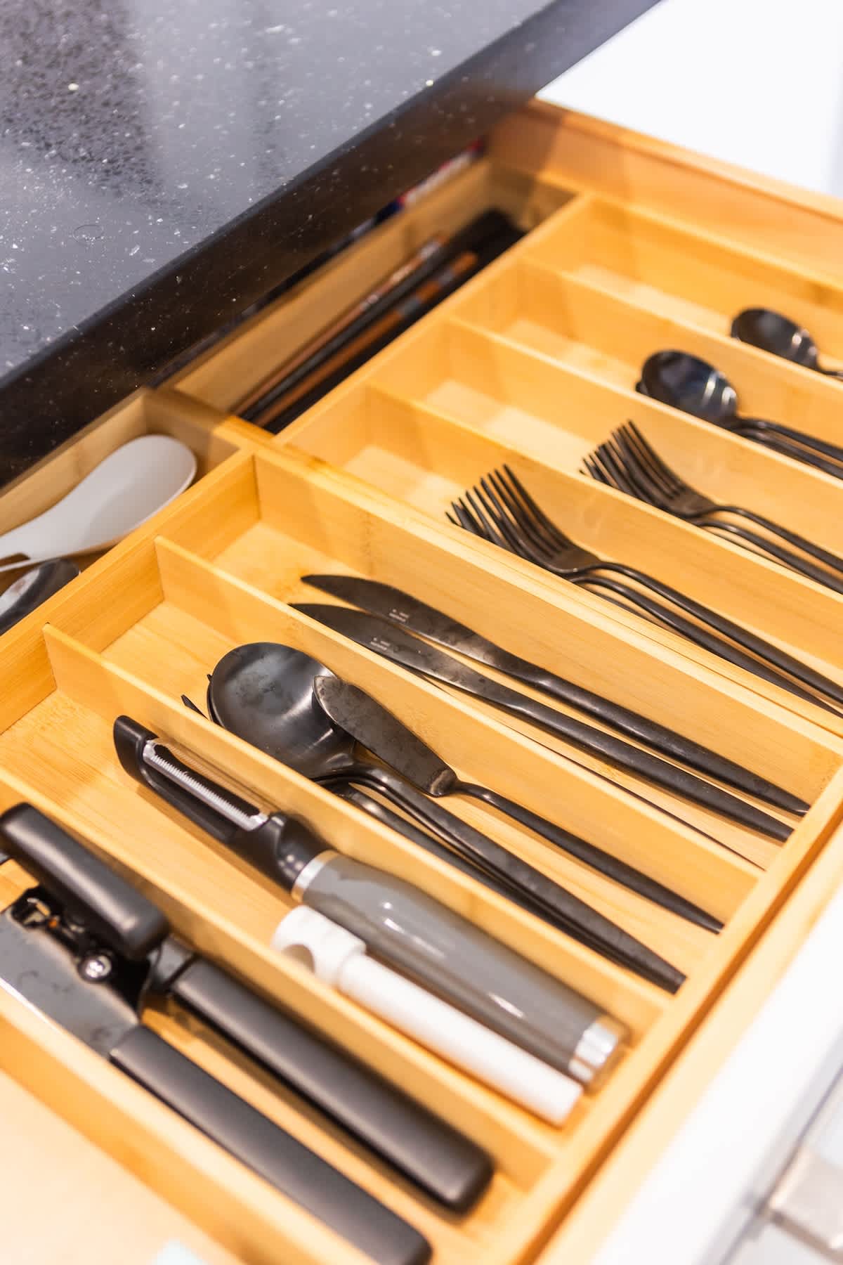 • Stocked with cookware, dishes, silverware, and utensils for home-style meals