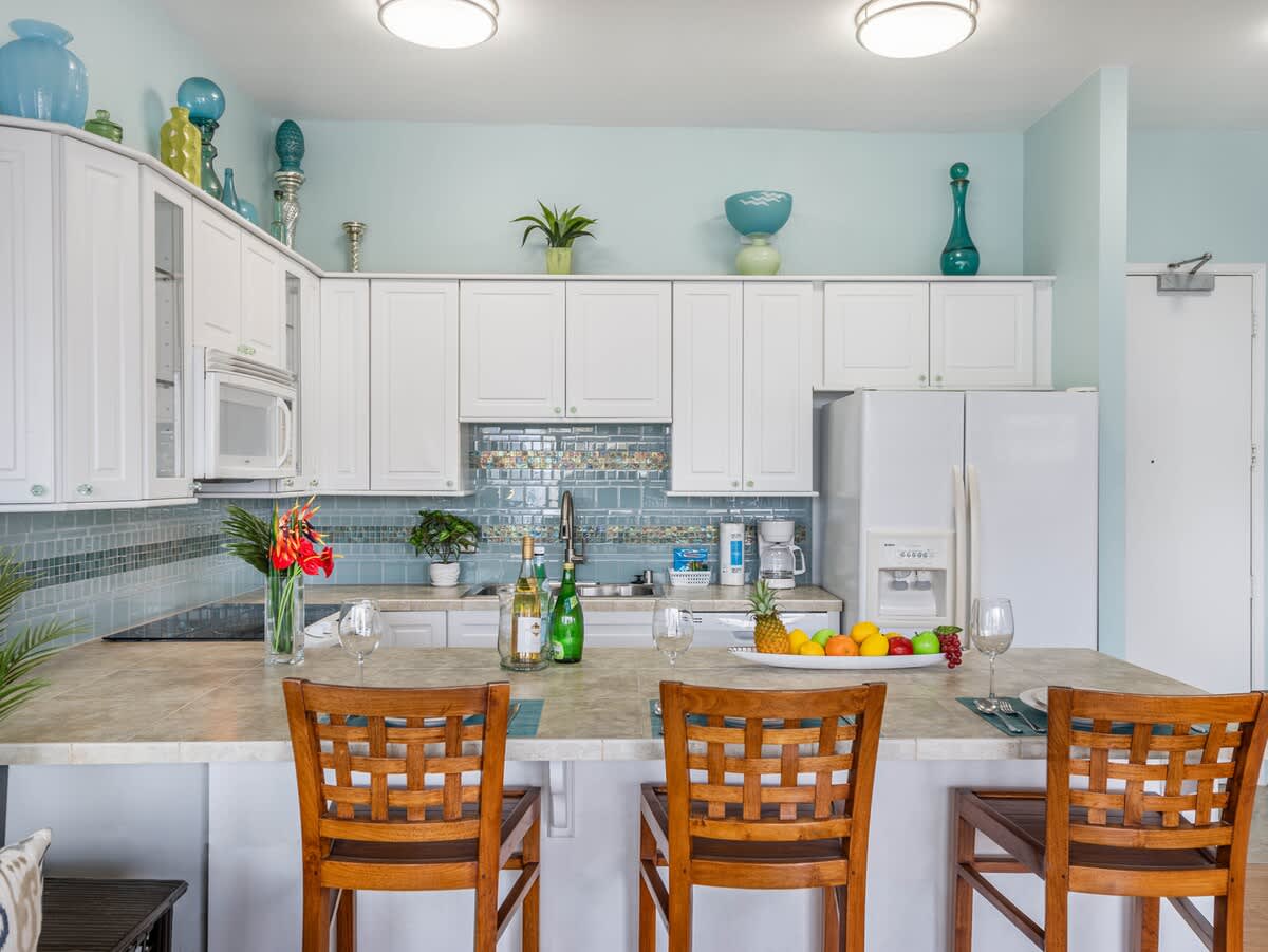 It is a bit dated in decor and starting to show some wear (the kitchen cabinets are peeling), but nothing that prevents a nice stay.