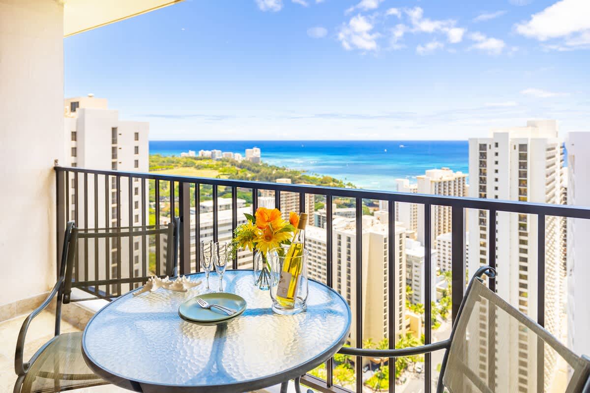 Stay in our remodeled 38th-floor condo at Waikiki Banyan, a short walk to Waikiki Beach, popular restaurants, shopping, Kapiolani Park, and bus lines for easy exploring. Enjoy ocean views, a prime central location, and the comfort of free parking and fast WiFi. Perfect for 2 guests!