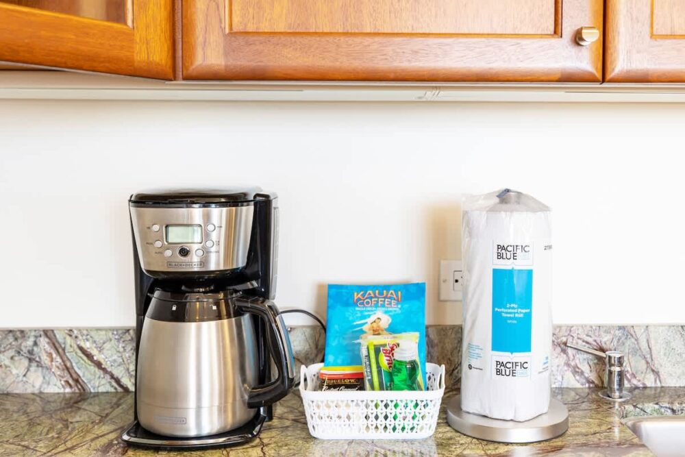 • Fully equipped with a toaster, coffee maker, rice cooker, blender, kettle, pots, pans, silverware, cookware, and dishes.
