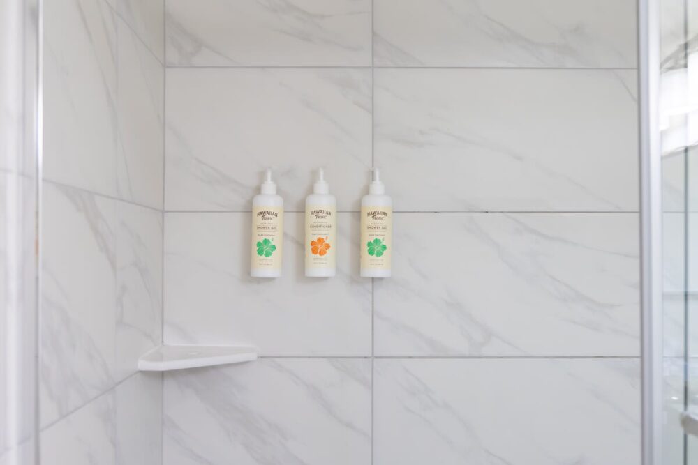 • Complimentary toiletries including shampoo, conditioner, body wash, plus a hair dryer