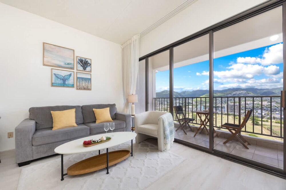 Experience a great Hawaiian escape in this high-floor 600 sq ft, 1-bedroom condo on the 38th floor of Waikiki Banyan Tower 2 (Mauka), offering panoramic mountain views from the kitchen, bedroom, and living room, plus a beautiful view of the Ala Wai Canal from the balcony. Perfect for families, it features a queen bed, a full bed, and a pull-out sofa, plus a 50” Samsung Smart TV. Enjoy cooking in the fully equipped kitchen, refreshing in the walk-in shower with a Toto bidet, and dining al fresco on the balcony while soaking in the spirit of aloha!
