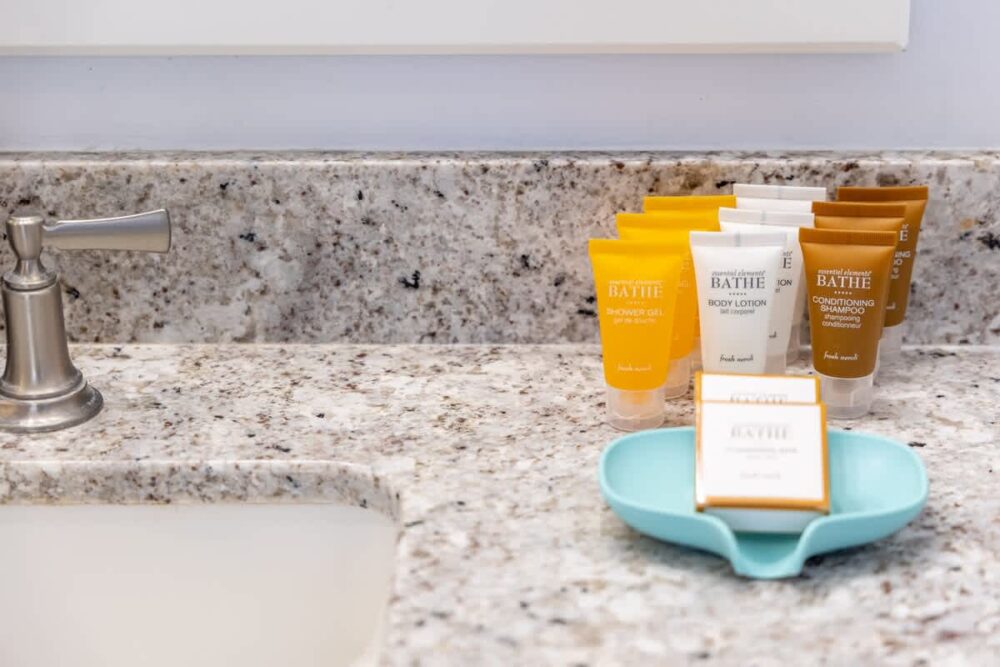 • Complimentary toiletries including shampoo, conditioner, and body wash