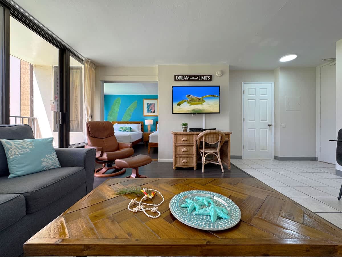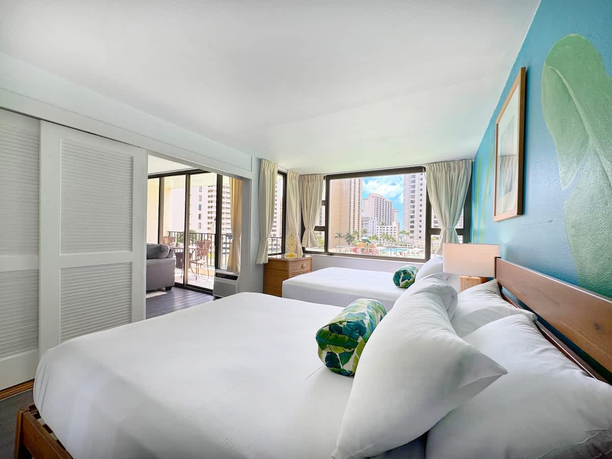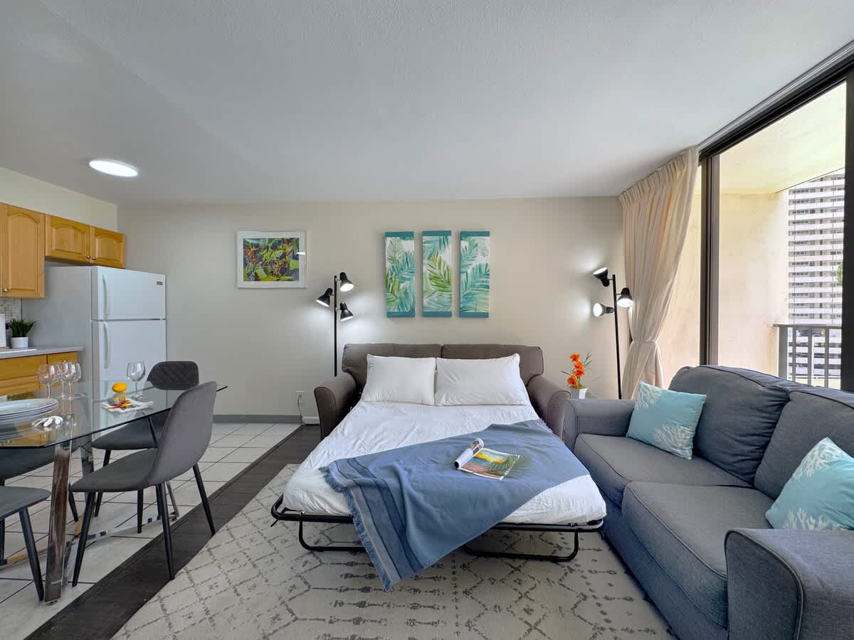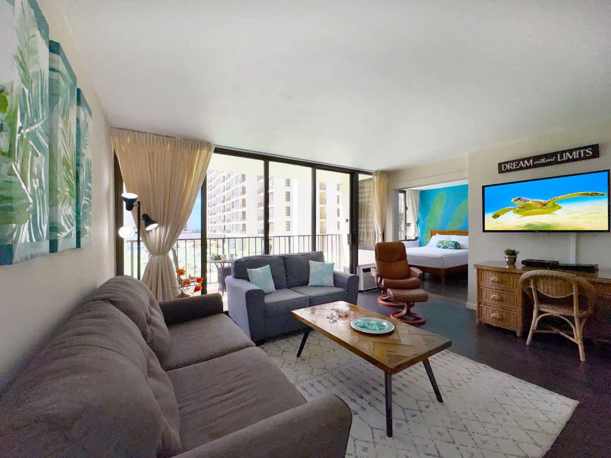 Stay in the heart of Waikiki at the Waikiki Banyan, just one block from world-famous Waikiki Beach and steps from dining, shopping, the Honolulu Zoo, and Kapiolani Park. Located on the 7th floor, this condo sleeps up to 4 guests and is perfect for your relaxing island getaway!