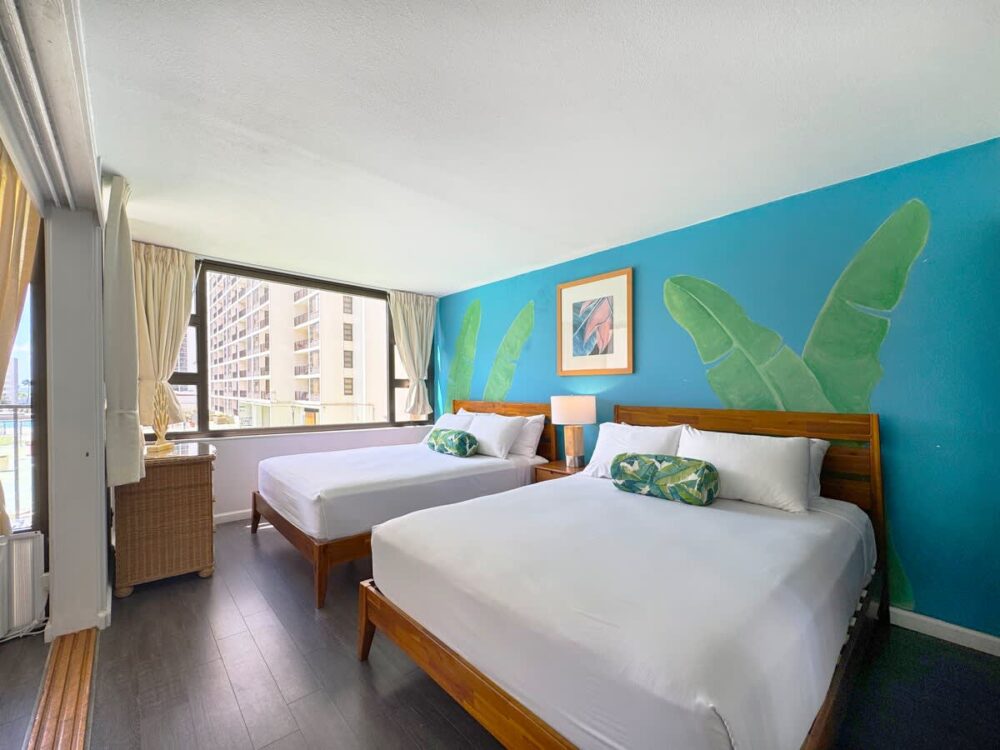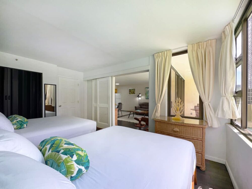Welcome to your cozy home away from home at the family-friendly Waikiki Banyan (Tower 2)! This 600 sq ft 1-bedroom condo on the 7th floor offers views of the recreation deck and is just a short walk from world-famous Waikiki Beach, dining, and shopping. Ideal for up to 4 guests, it features air conditioning, a fully equipped kitchen, a living area with a pull-out sofa and smart TV, 2 queen beds, and a tub/shower combo. Enjoy fresh linens, laundry on every floor, plus free Wi-Fi and parking for a carefree island stay!