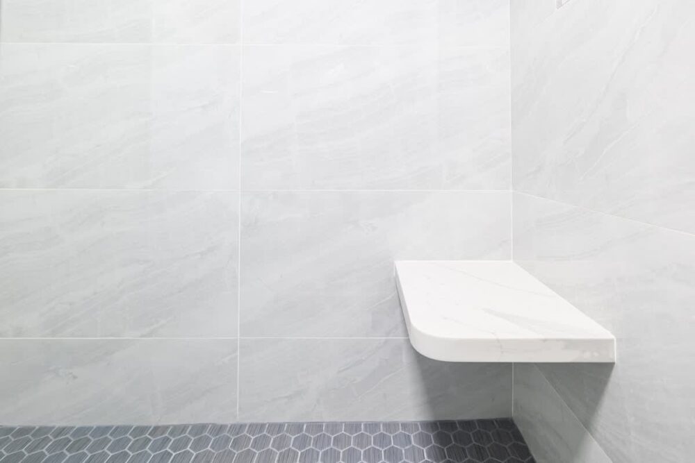 – Vinyl plank floor and tiles in the walk-in shower