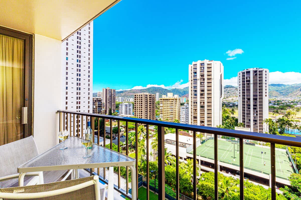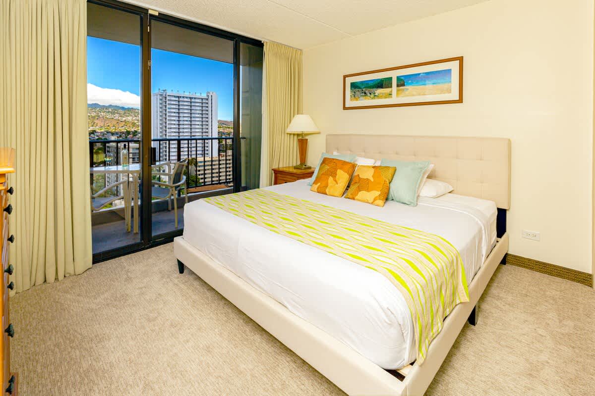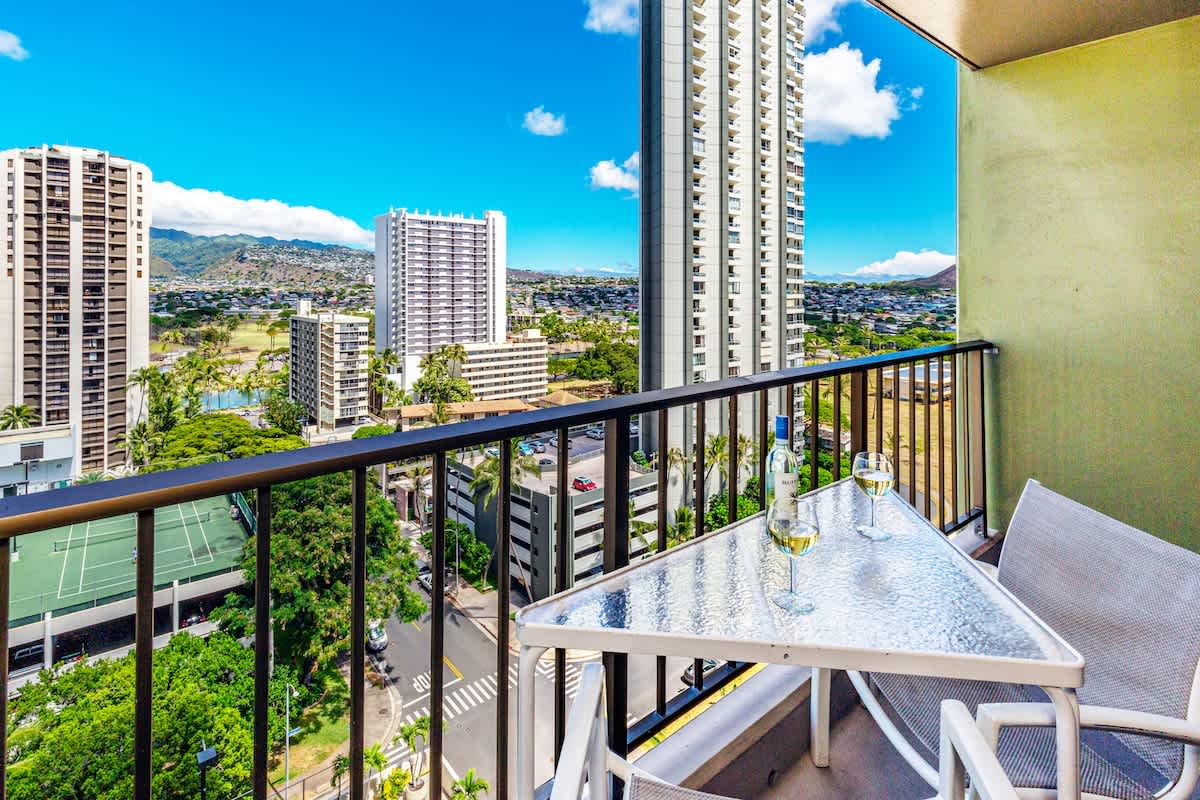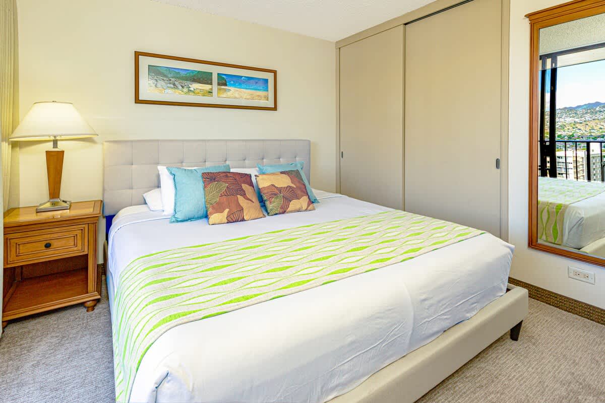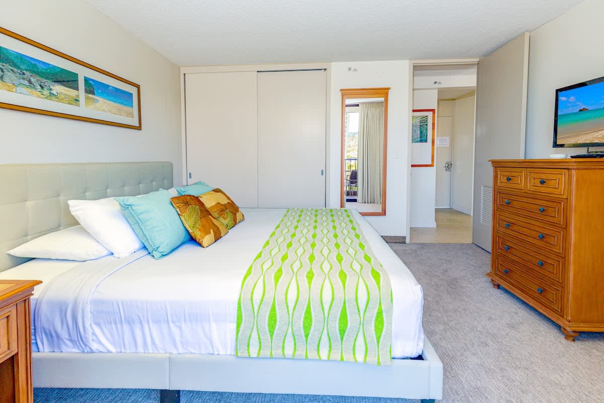 Ready to drink in the pristine mountain view from your towering island condo? Then you’re going to love this one-bedroom unit in the heart of historic Waikiki, at the family-friendly Waikiki Sunset Resort. This 16th-floor condo truly has it all: a breathtaking view of the mountains and of Honolulu, all of which can be enjoyed on your private lanai balcony! You’ll only be a 5-minute walk from the warm sands and blue waters of the Pacific, at one of Hawaii’s most well-renowned, popular, and famous beaches, ready to soak up the sun, do some snorkeling, or just kick back and relax on your new favorite lounge chair.