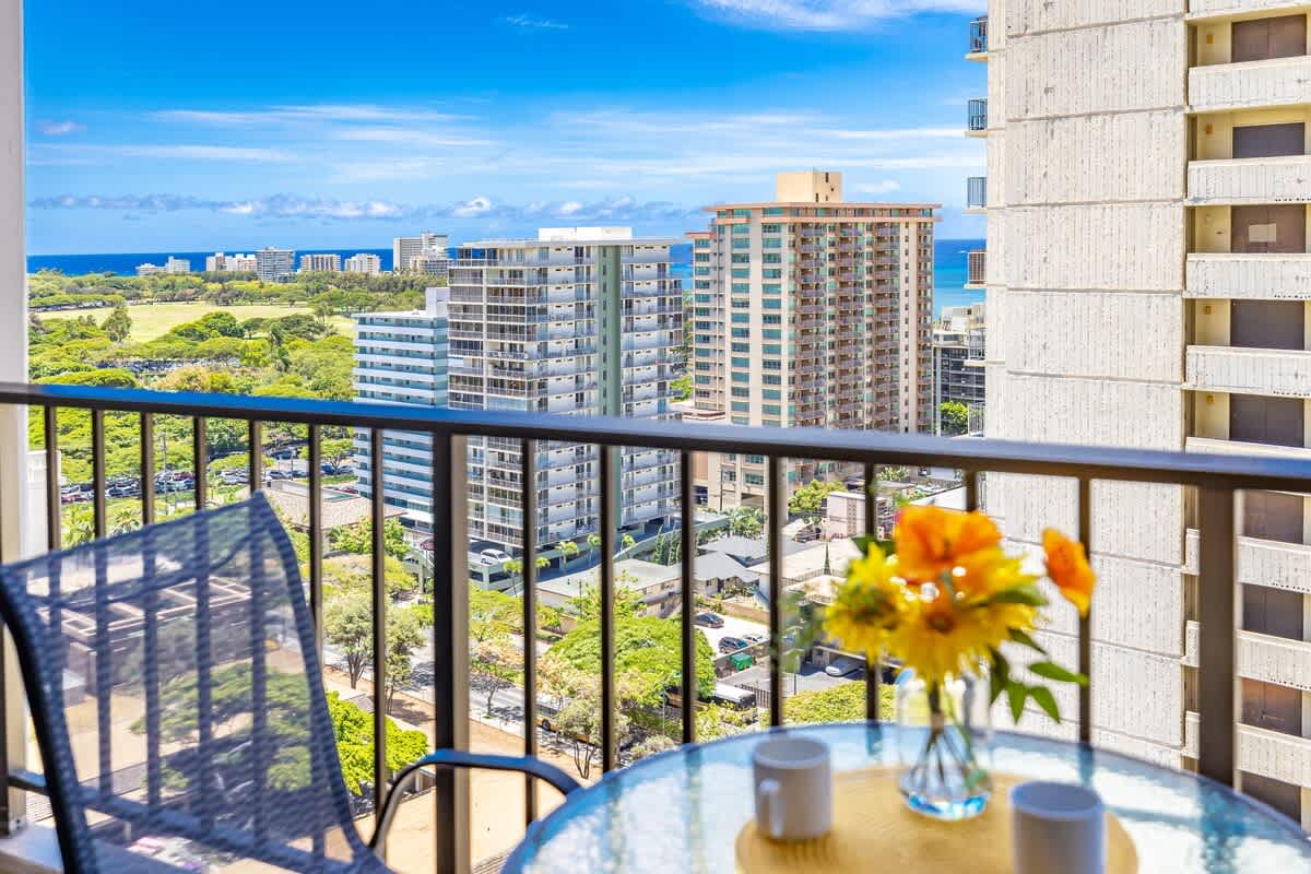 Relax in this charming 1-bedroom condo on the 20th floor, brought to you by Midway Vacations. Enjoy beautiful ocean and mountain views, free parking, and high-speed Wi-Fi. Just a short 5-minute walk to Waikiki Beach, great dining, and shopping. Sleeps up to 4 guests—ideal for a comfortable island stay!