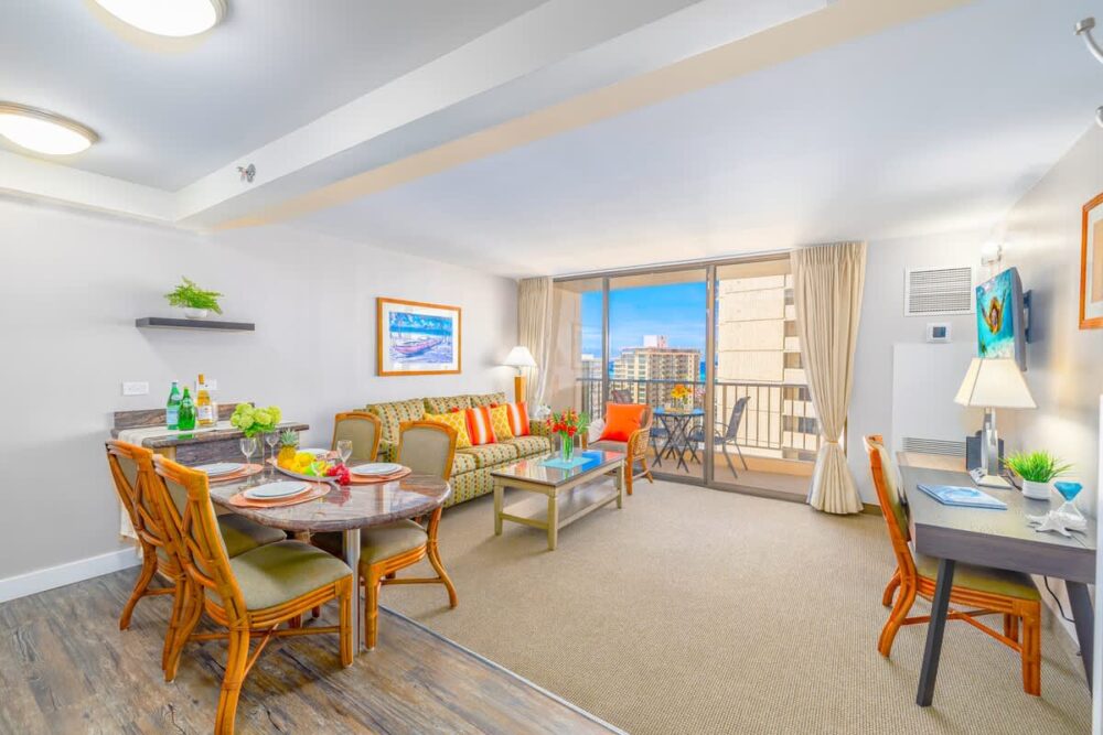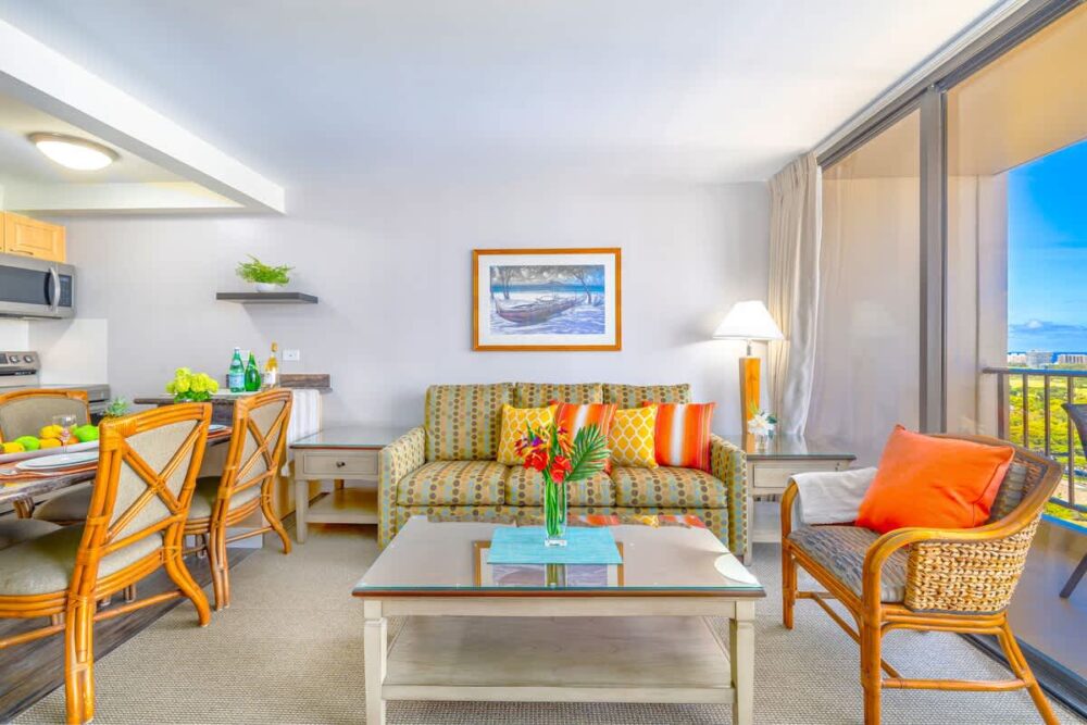 Ready to drink in a pristine view of the ocean and Diamond Head Mountain from your towering island condo? Then you’ll love this one-bedroom unit in the heart of historic Waikiki at the family-friendly Waikiki Sunset Resort. This 20th-floor condo truly has it all: a breathtaking view of both the ocean and of Diamond Head, not to mention a private lanai to enjoy it from! You’ll be only a 5-minute walk from the warm sands and blue waters of the Pacific at one of Hawaii’s most well-renowned, popular, and famous beaches, ready to soak up the sun, do some snorkeling, or kick back and relax on your new favorite lounge chair.