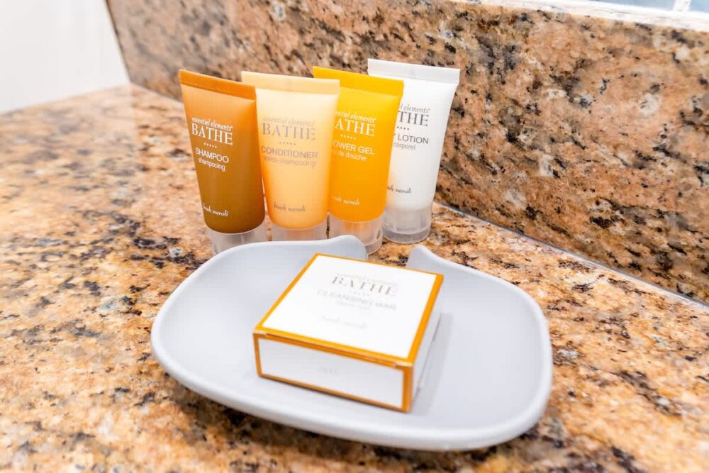 • Complimentary toiletries including shampoo, conditioner, and body wash